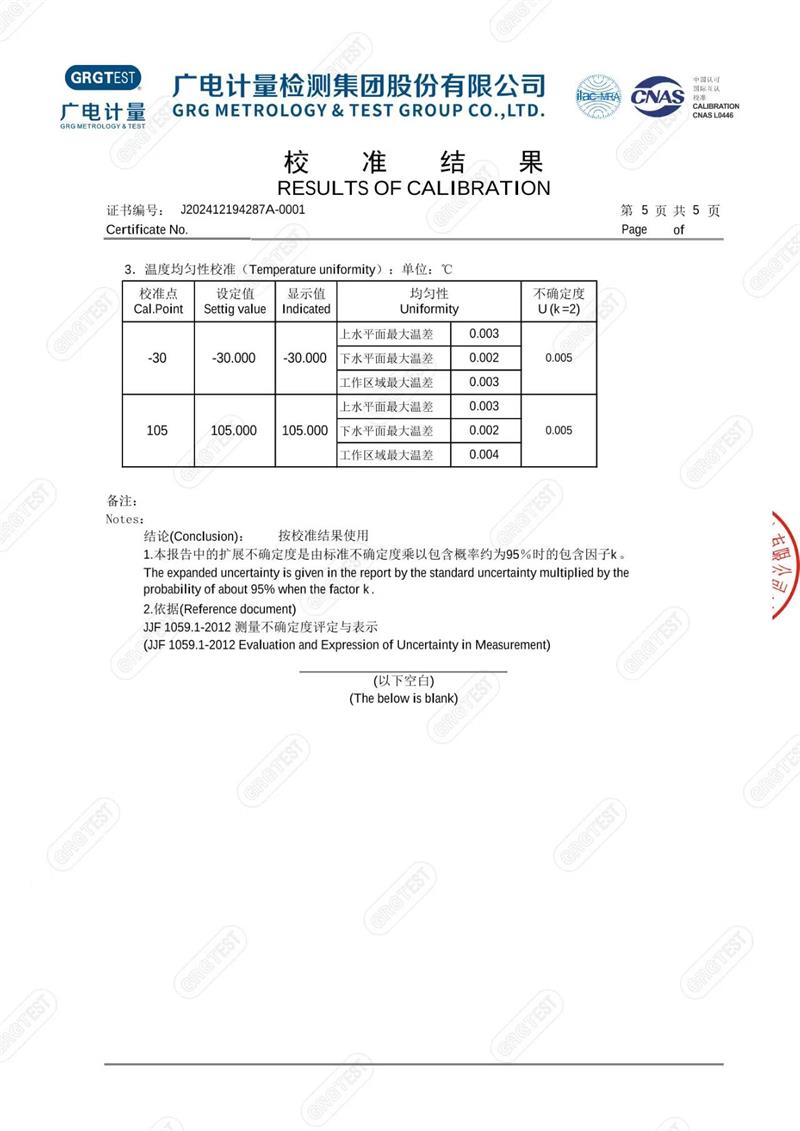 | 上一條:便攜式制冷恒溫槽(-30-105℃)校準(zhǔn)證書 | 下一條:智能干體儀(六位半精度)校準(zhǔn)證書 |