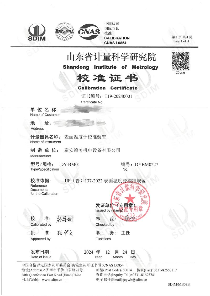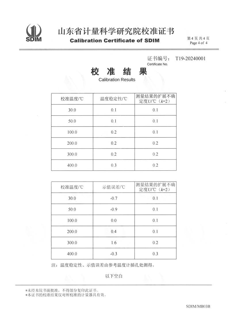 | 上一條:中溫腔式黑體爐(50~600℃)校準(zhǔn)證書(shū) | 下一條:智能干體儀(六位半精度)校準(zhǔn)證書(shū) |