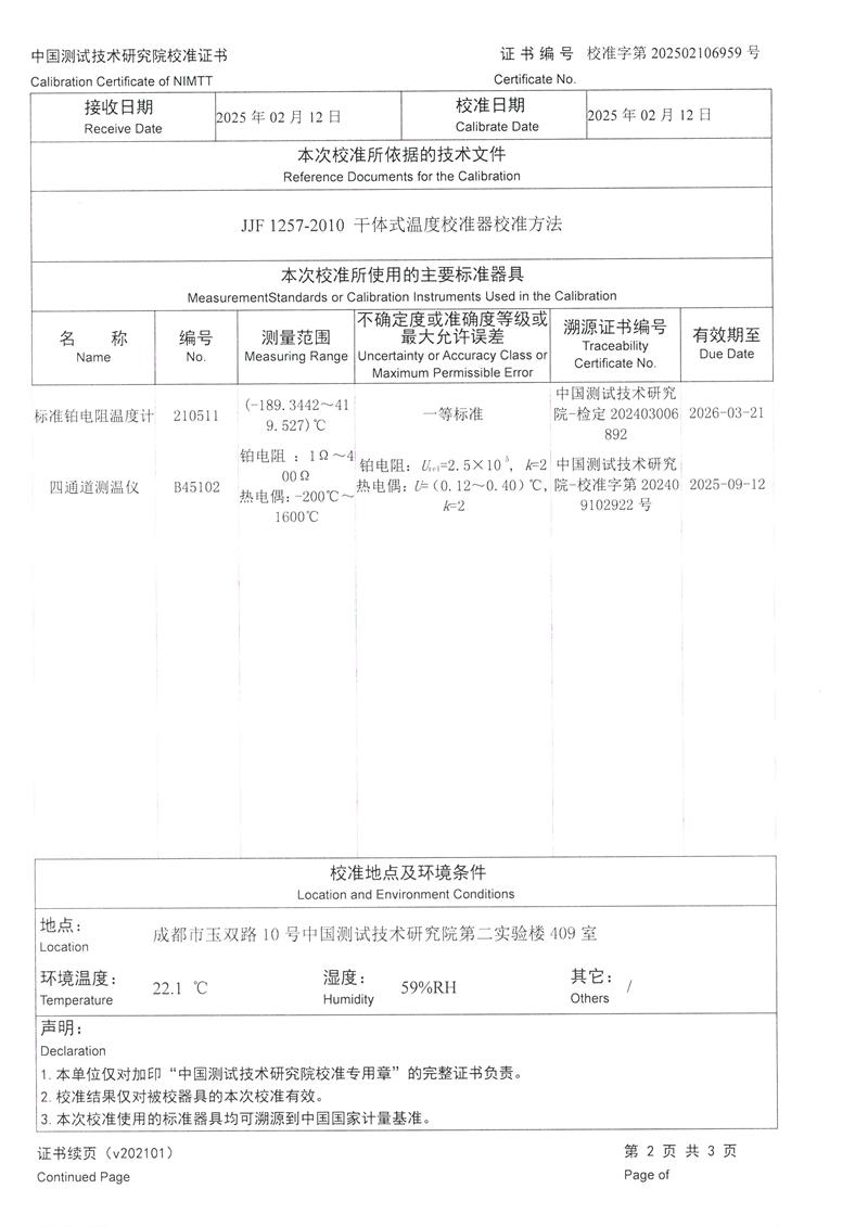 | 上一條:高精度數(shù)字溫度計(jì)(-80~300℃)校準(zhǔn)證書(shū) | 下一條:智能干體儀(六位半精度)校準(zhǔn)證書(shū) |