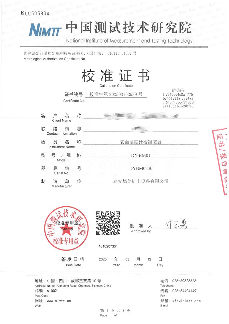 | 上一條:中溫黑體爐(50~700℃)校準(zhǔn)證書 | 下一條:智能干體儀(六位半精度)校準(zhǔn)證書 |