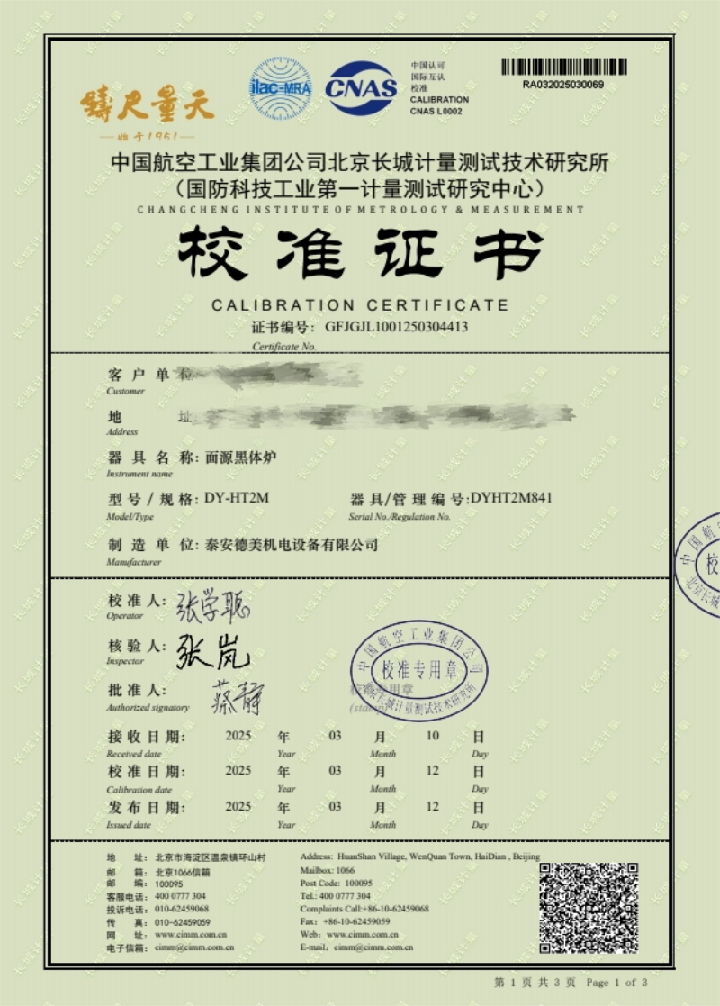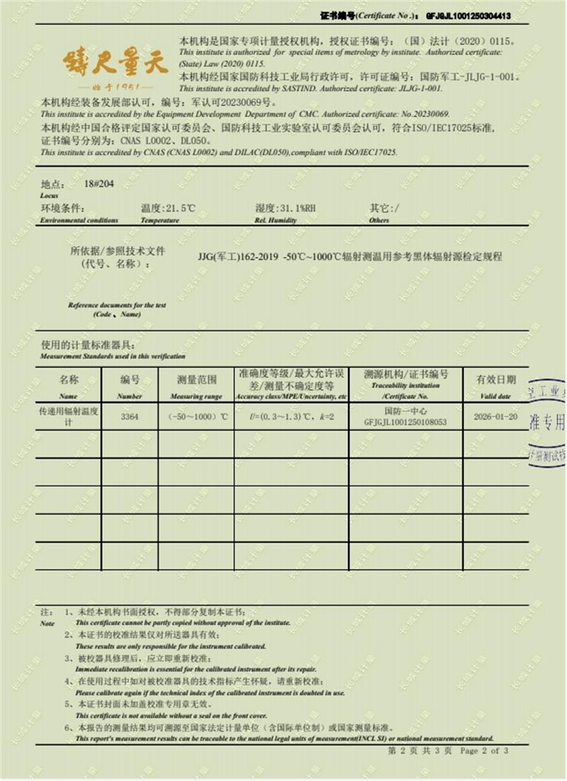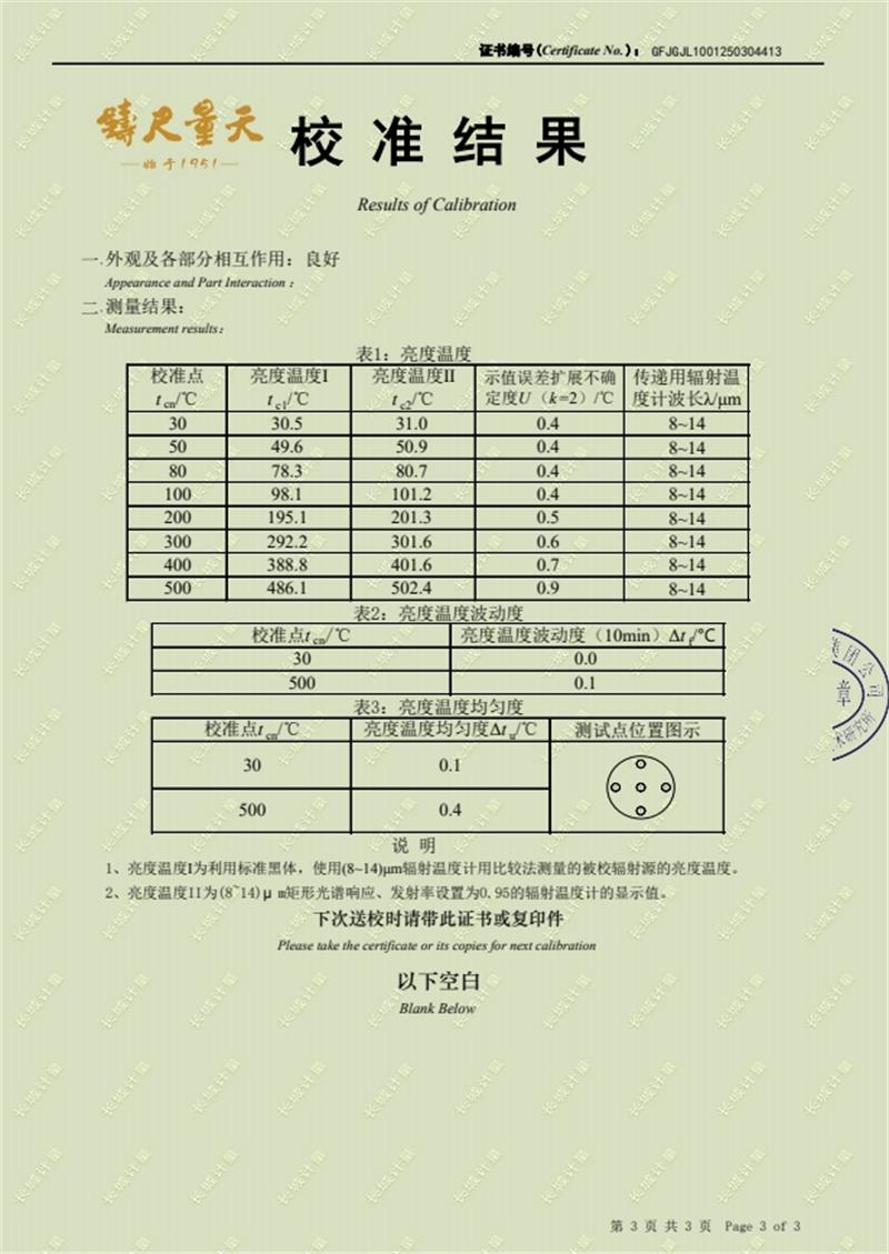面源黑體爐(室溫+5-500℃)校準(zhǔn)證書 2025-3-15 本文被閱讀 5302 次