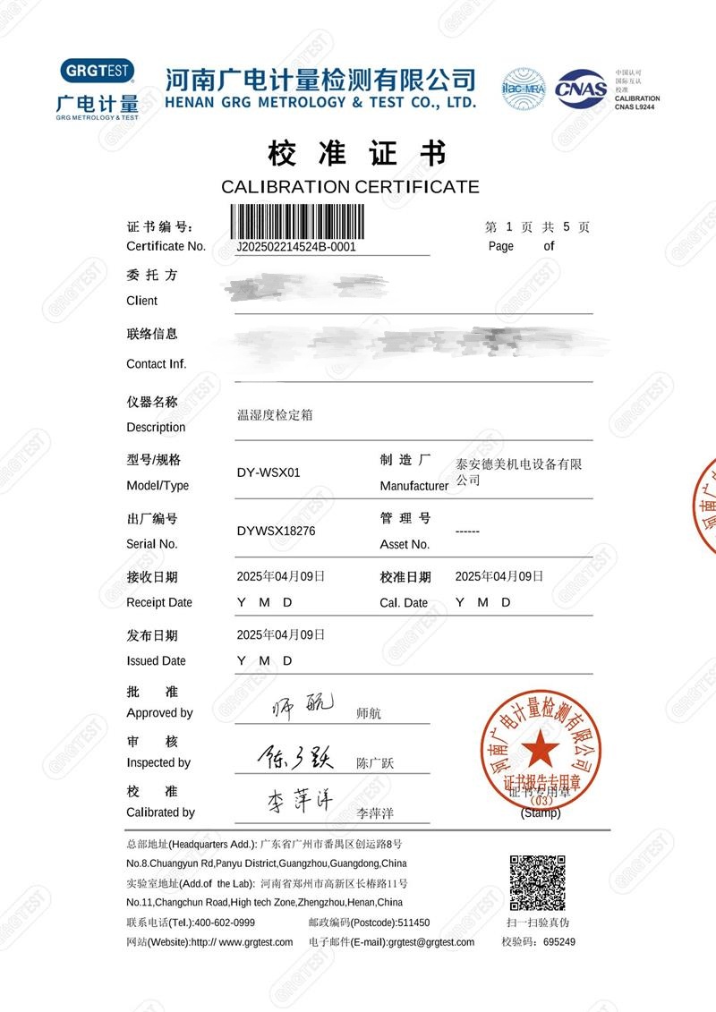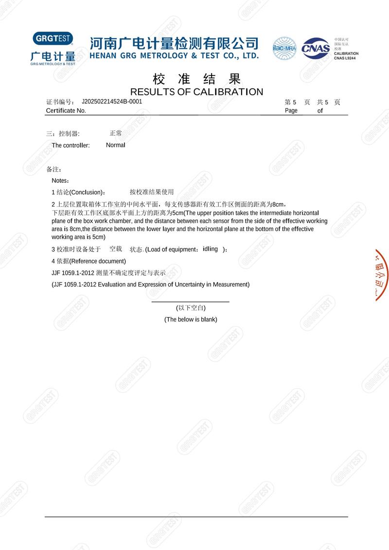 | 上一條:低溫浴式面源黑體爐(-50-80℃)校準(zhǔn)證書 | 下一條:智能干體儀(六位半精度)校準(zhǔn)證書 |