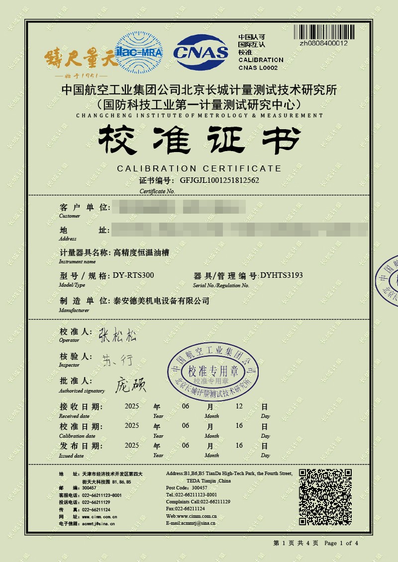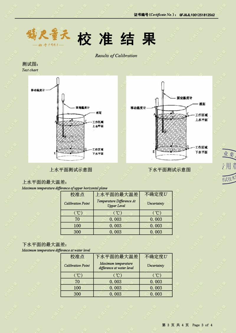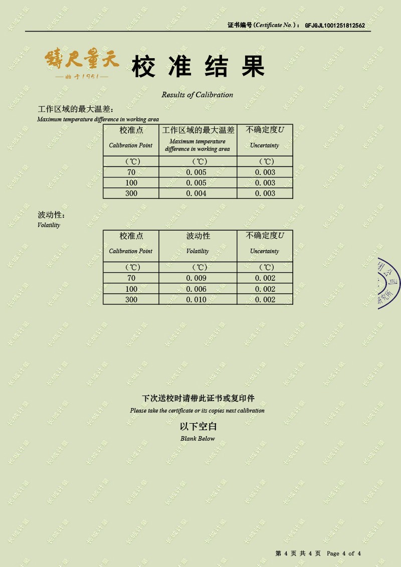 | 上一條:高精度制冷恒溫(-40-100℃)校準(zhǔn)證書(shū) | 下一條:智能干體儀(六位半精度)校準(zhǔn)證書(shū) |