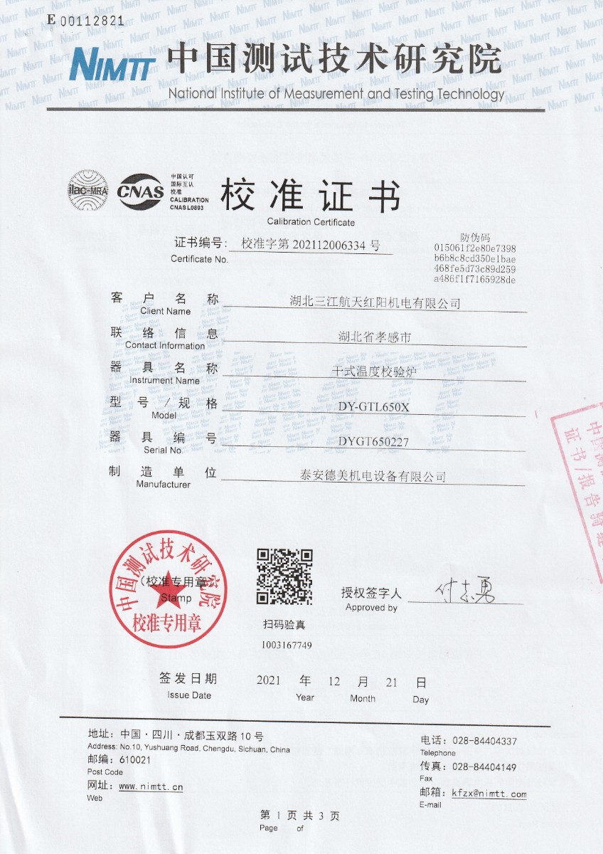 | 上一條:晶科能源(海寧)有限公司-精密露點(diǎn)儀(溫度) | 下一條:智能干體儀(六位半精度)校準(zhǔn)證書(shū) |