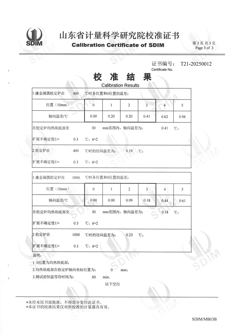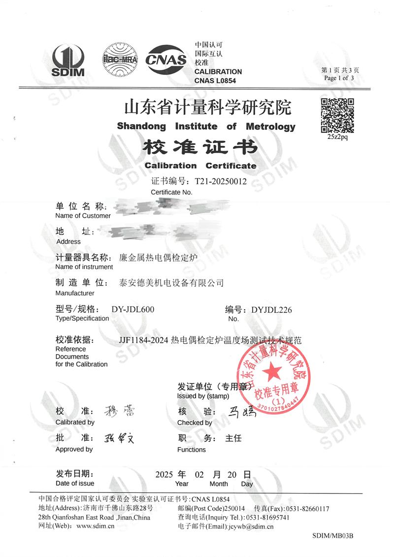 | 上一條:熱電阻、熱電偶自動(dòng)檢定系統(tǒng)校準(zhǔn)證書(shū) | 下一條:智能干體儀(六位半精度)校準(zhǔn)證書(shū) |