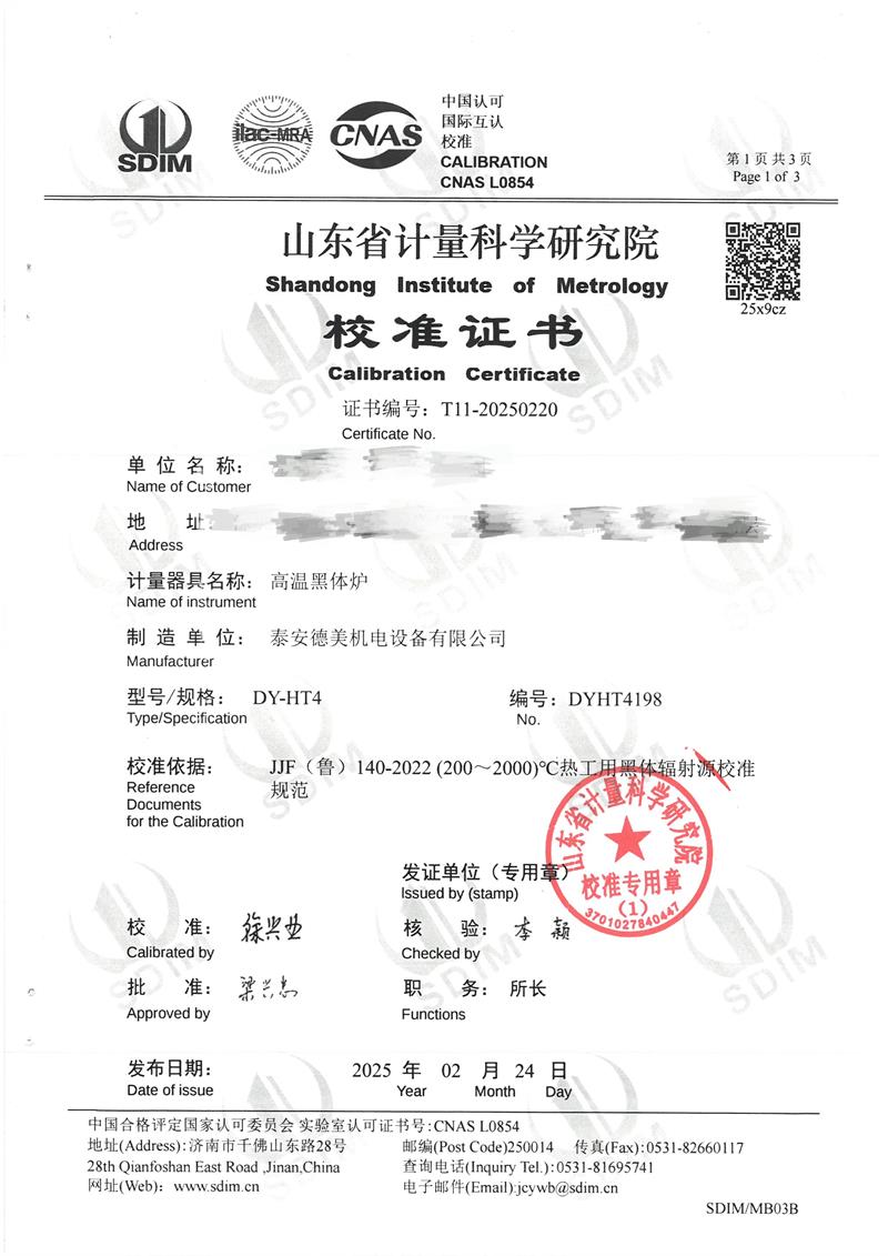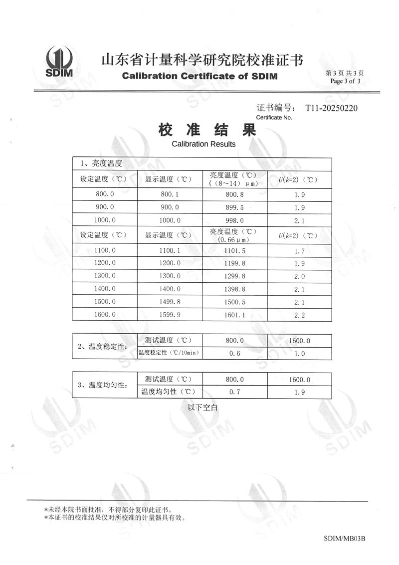 高溫黑體爐(800~1600℃)校準證書 2025-2-26 本文被閱讀 5033 次