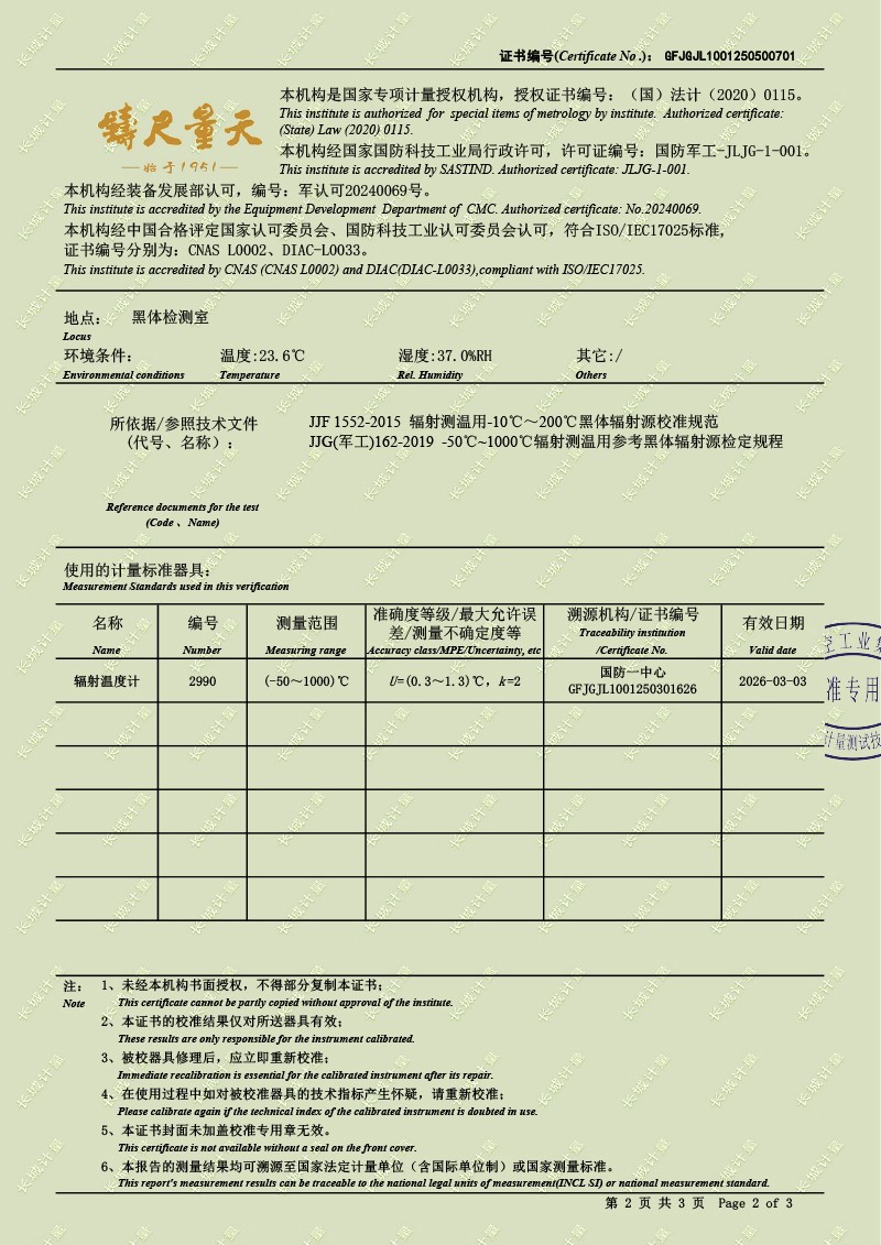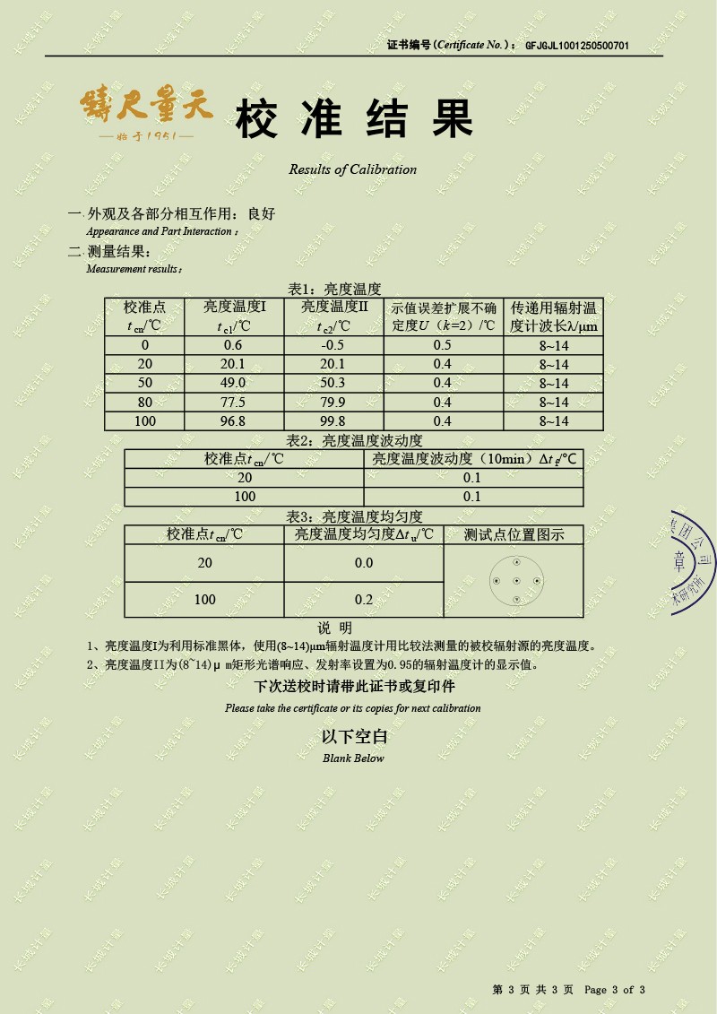 差分黑體爐(0-100℃)校準(zhǔn)證書 2025-5-9 本文被閱讀 3241 次