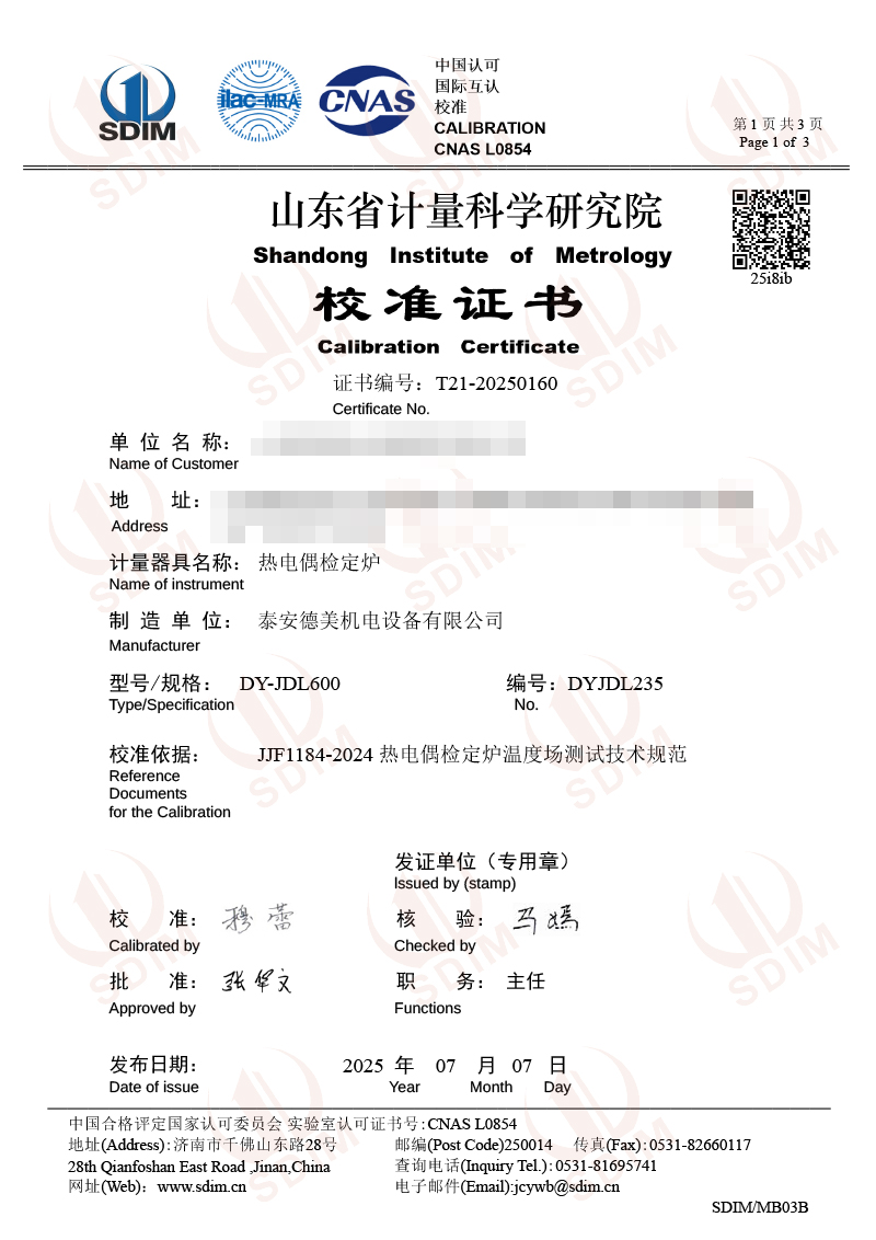 | 上一條:制冷恒溫槽(-40-100℃)校準(zhǔn)證書 | 下一條:智能干體儀(六位半精度)校準(zhǔn)證書 |