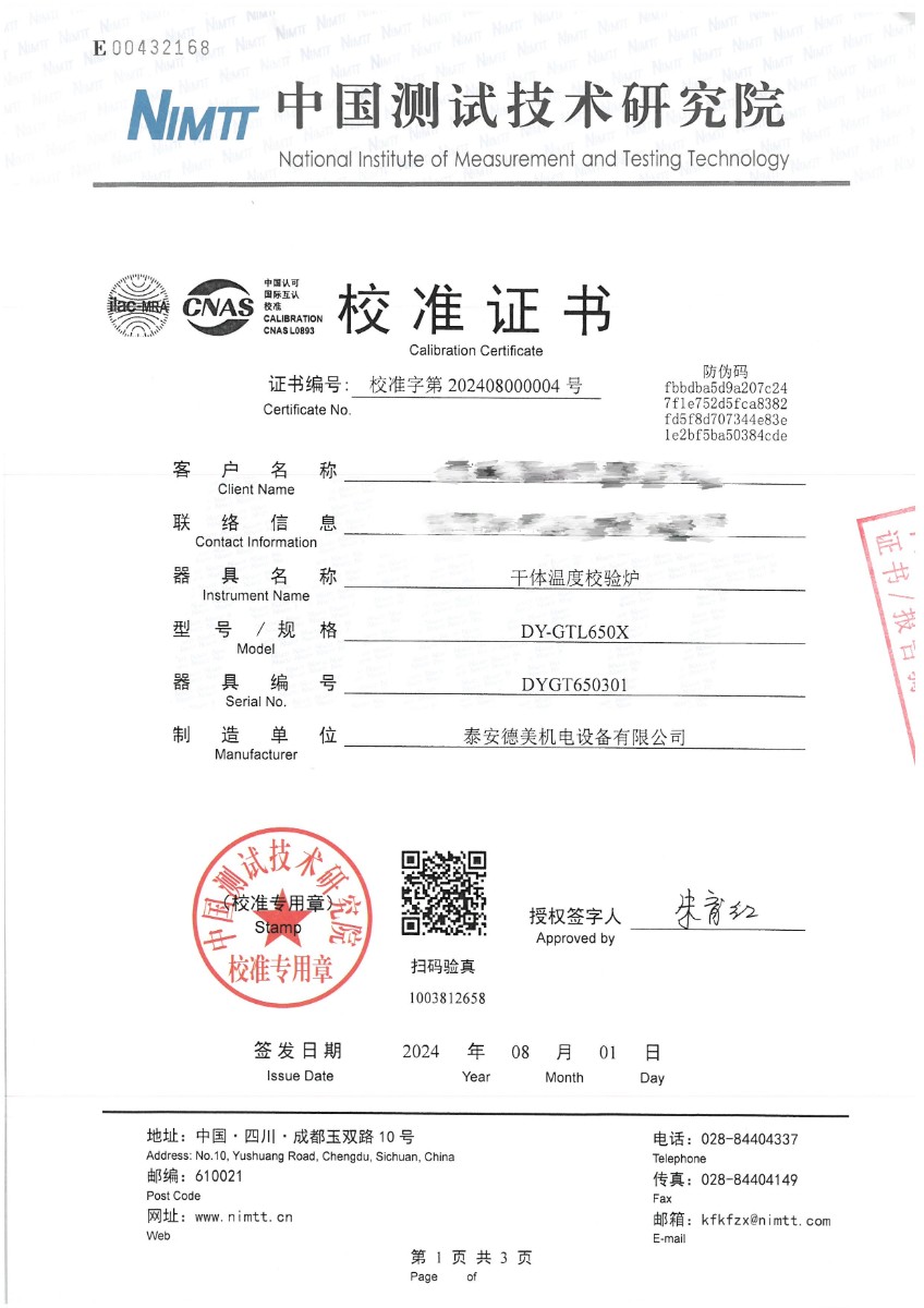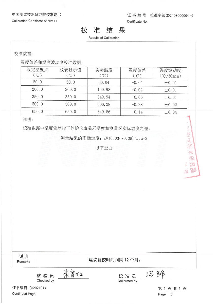 | 上一條:干體爐300(室溫+5℃~650℃)校準(zhǔn)證書 | 下一條:智能干體儀(六位半精度)校準(zhǔn)證書 |