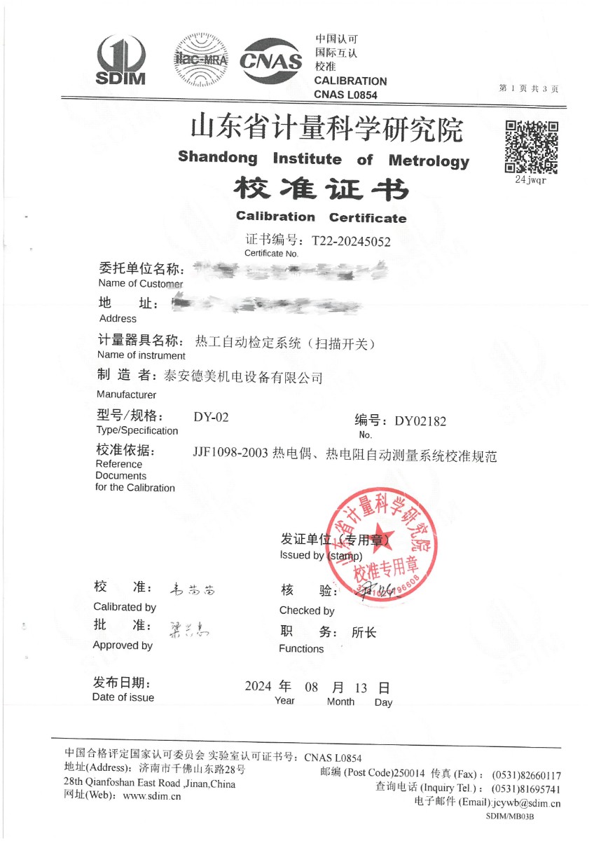 | 上一條:表面溫度計(jì)(室溫+5~400℃)校準(zhǔn)證書 | 下一條:智能干體儀(六位半精度)校準(zhǔn)證書 |
