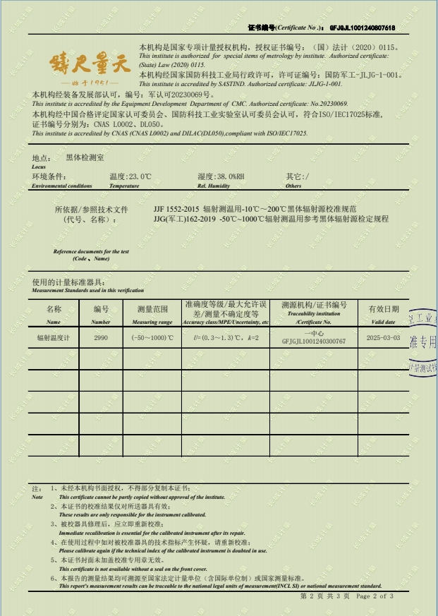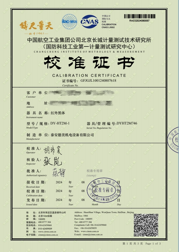 紅外黑體,室溫+5-300℃校準證書 2024-8-29 本文被閱讀 7997 次