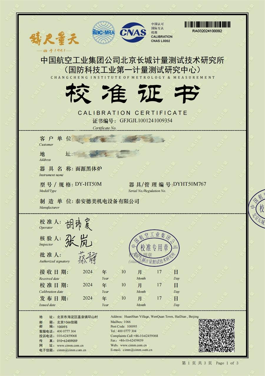 | 上一條:高溫黑體爐(700-1600℃)校準(zhǔn)證書 | 下一條:智能干體儀(六位半精度)校準(zhǔn)證書 |