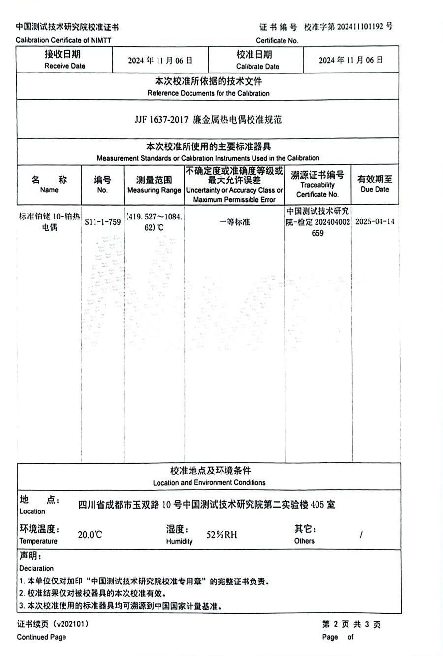| 上一條:面源黑體爐(+5-300℃)校準(zhǔn)證書(shū) | 下一條:智能干體儀(六位半精度)校準(zhǔn)證書(shū) |