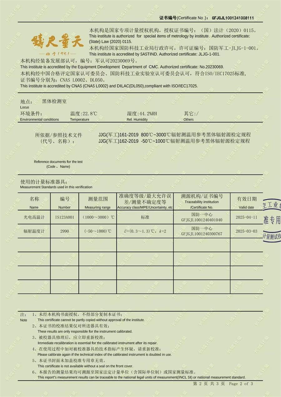 高溫黑體爐(800-1700℃)校準(zhǔn)證書 2024-11-15 本文被閱讀 7045 次