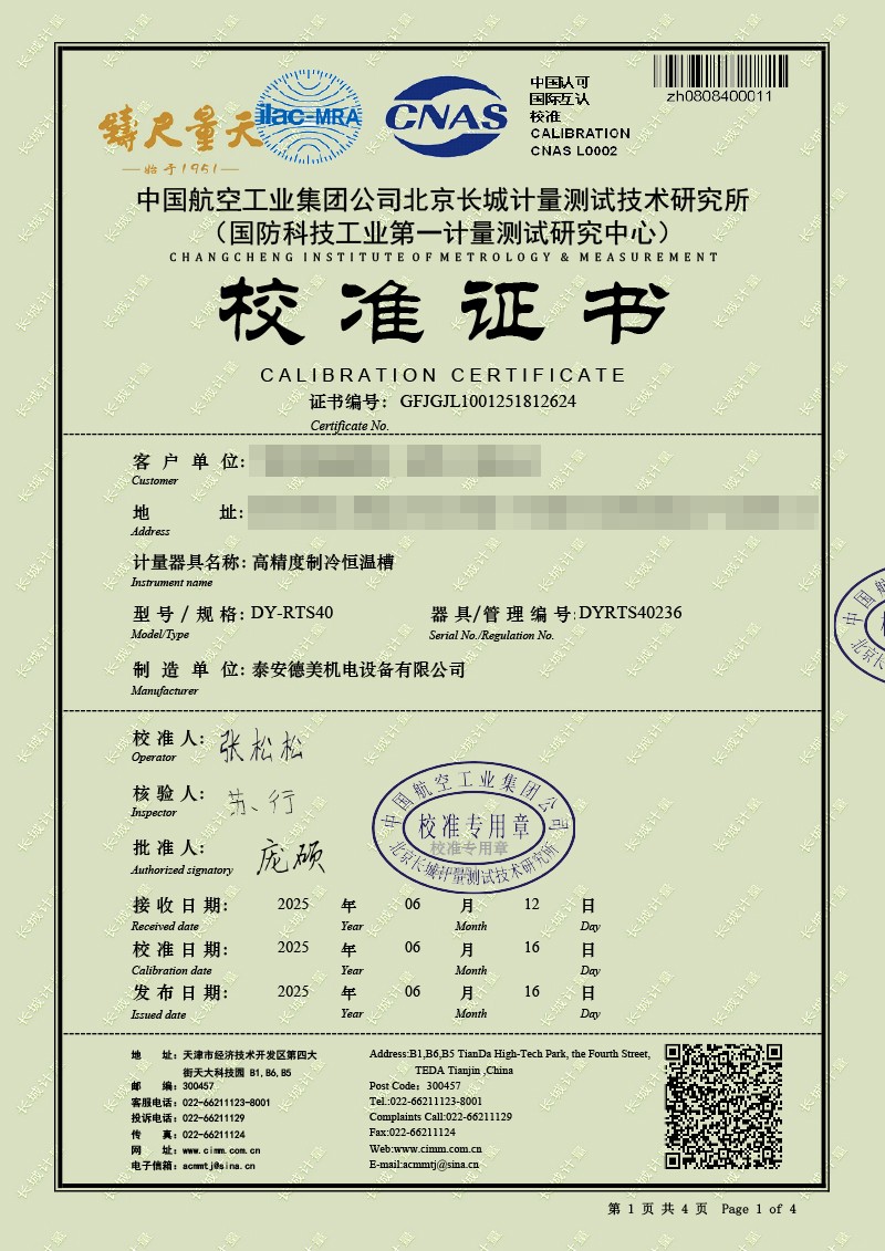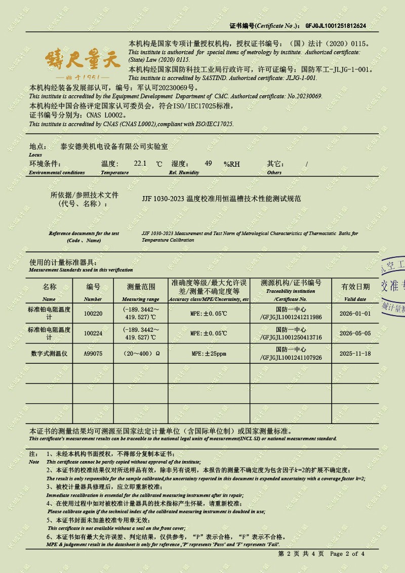 高精度制冷恒溫(-40-100℃)校準(zhǔn)證書 2025-6-25 本文被閱讀 2818 次