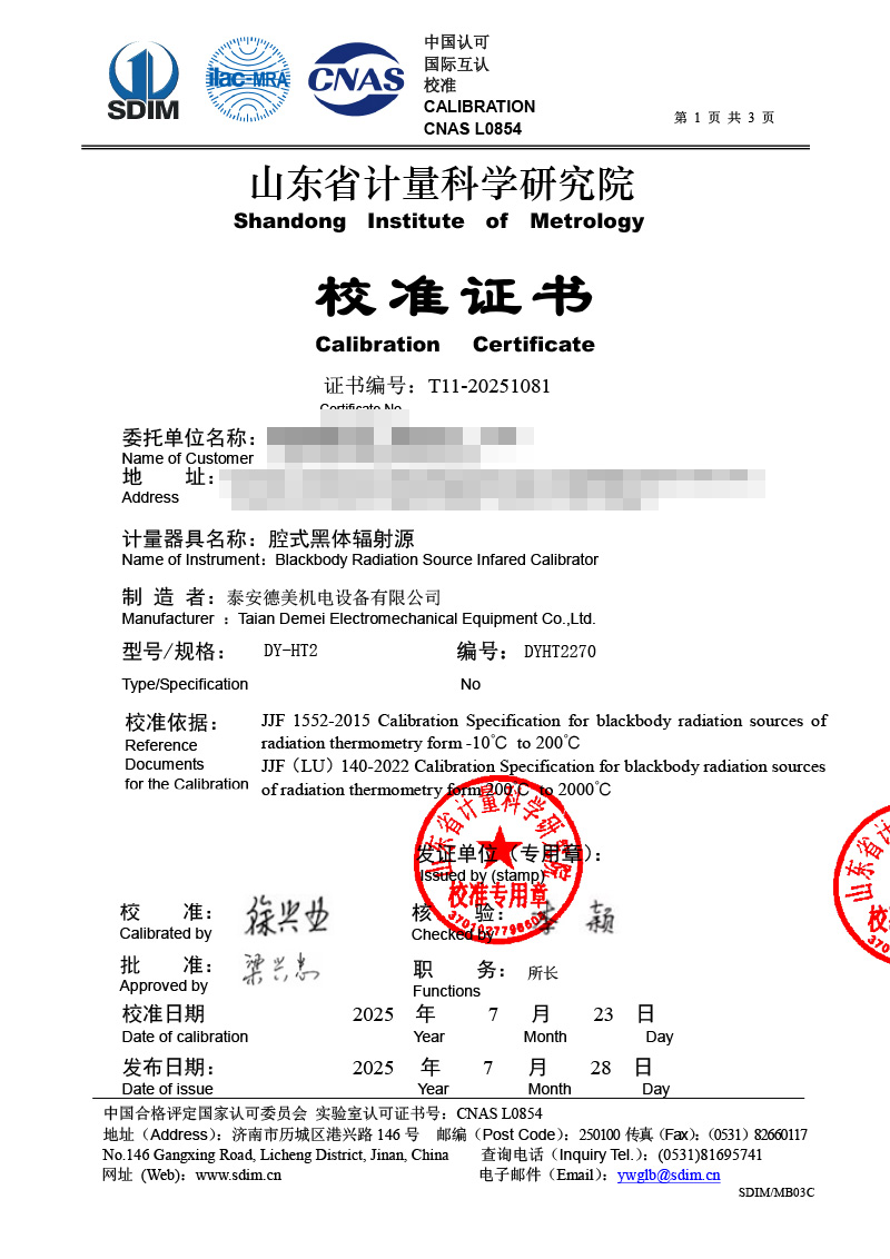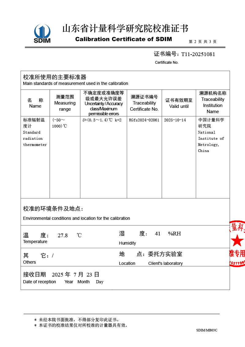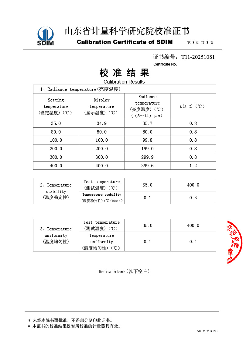 | 上一條:低溫面源黑體爐(0-60℃)校準(zhǔn)證書(shū) | 下一條:智能干體儀(六位半精度)校準(zhǔn)證書(shū) |