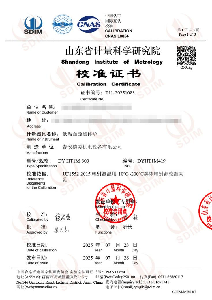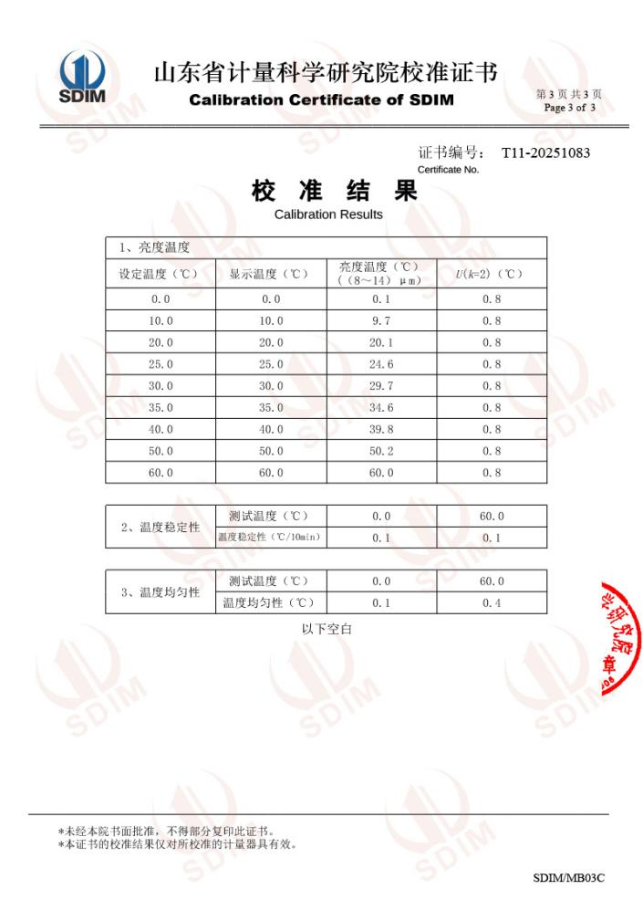 | 上一條:便攜溫濕度檢定箱校準(zhǔn)證書 | 下一條:超低溫面源黑體爐(-40-80℃)校準(zhǔn)證書 |