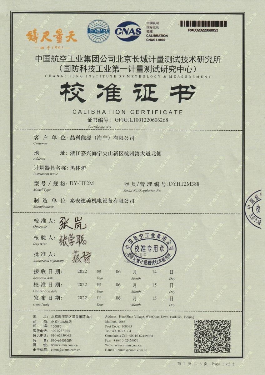 晶科能源(海寧)有限公司-黑體爐 2022-7-5 本文被閱讀 14423 次