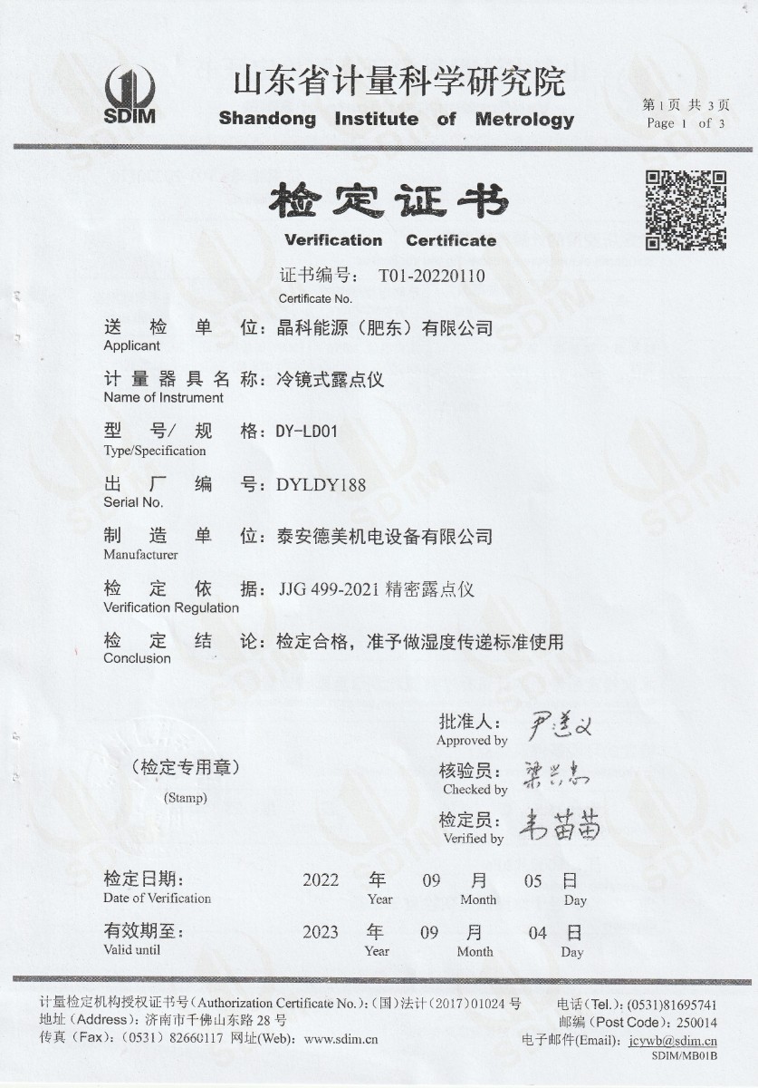 | 上一條:晶科能源(肥東)有限公司-溫濕度檢定箱 | 下一條:智能干體儀(六位半精度)校準(zhǔn)證書 |