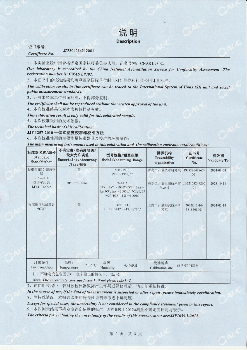 | 上一條:廣東省順邦計量檢測科技有限公司 冷鏡式露點(diǎn)儀(溫度) 校準(zhǔn)證書 | 下一條:智能干體儀(六位半精度)校準(zhǔn)證書 |