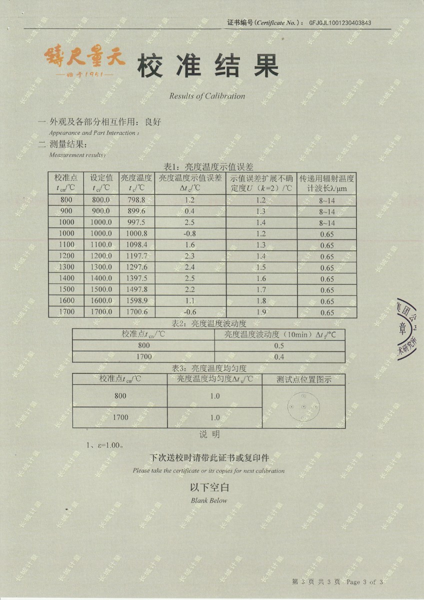 | 上一條:無錫英菲感知技術(shù)有限公司 高溫黑體 校準(zhǔn)證書 (2) | 下一條:智能干體儀(六位半精度)校準(zhǔn)證書 |