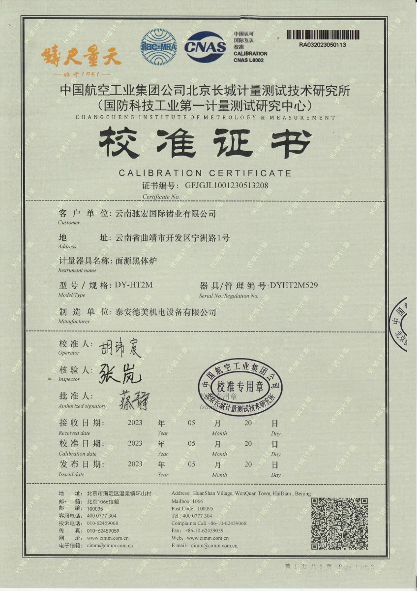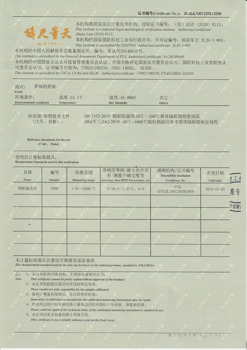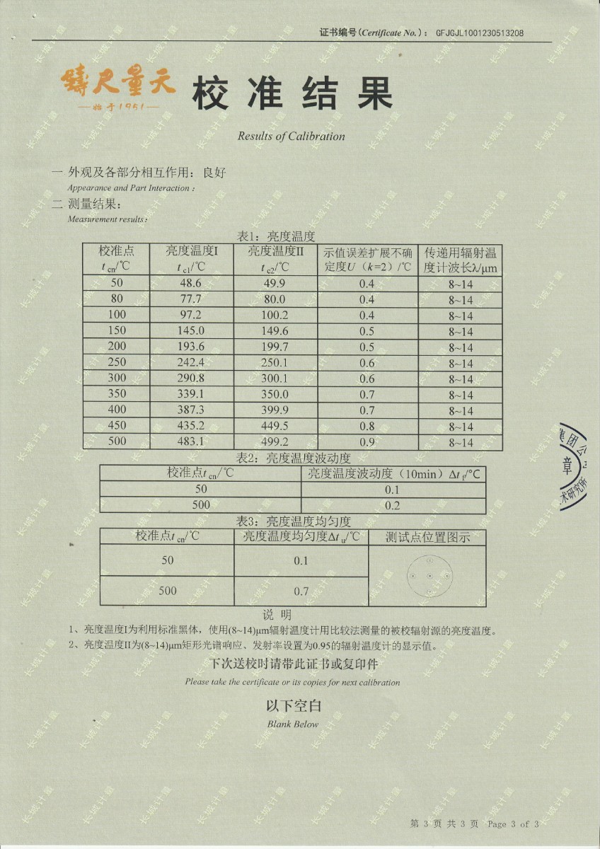 | 上一條:方圓檢測認(rèn)證集團有限公司 中溫黑體校準(zhǔn)證書 | 下一條:智能干體儀(六位半精度)校準(zhǔn)證書 |