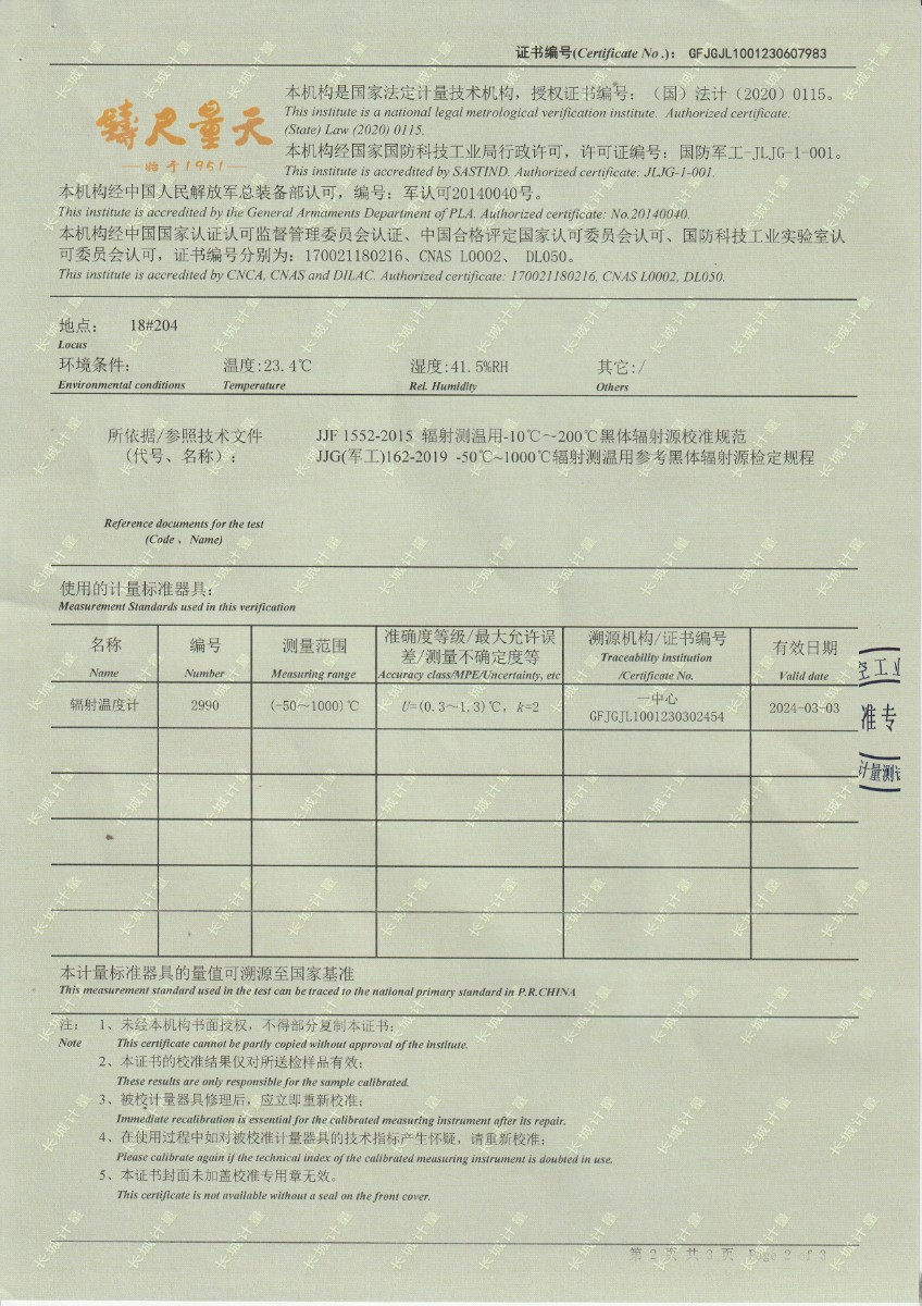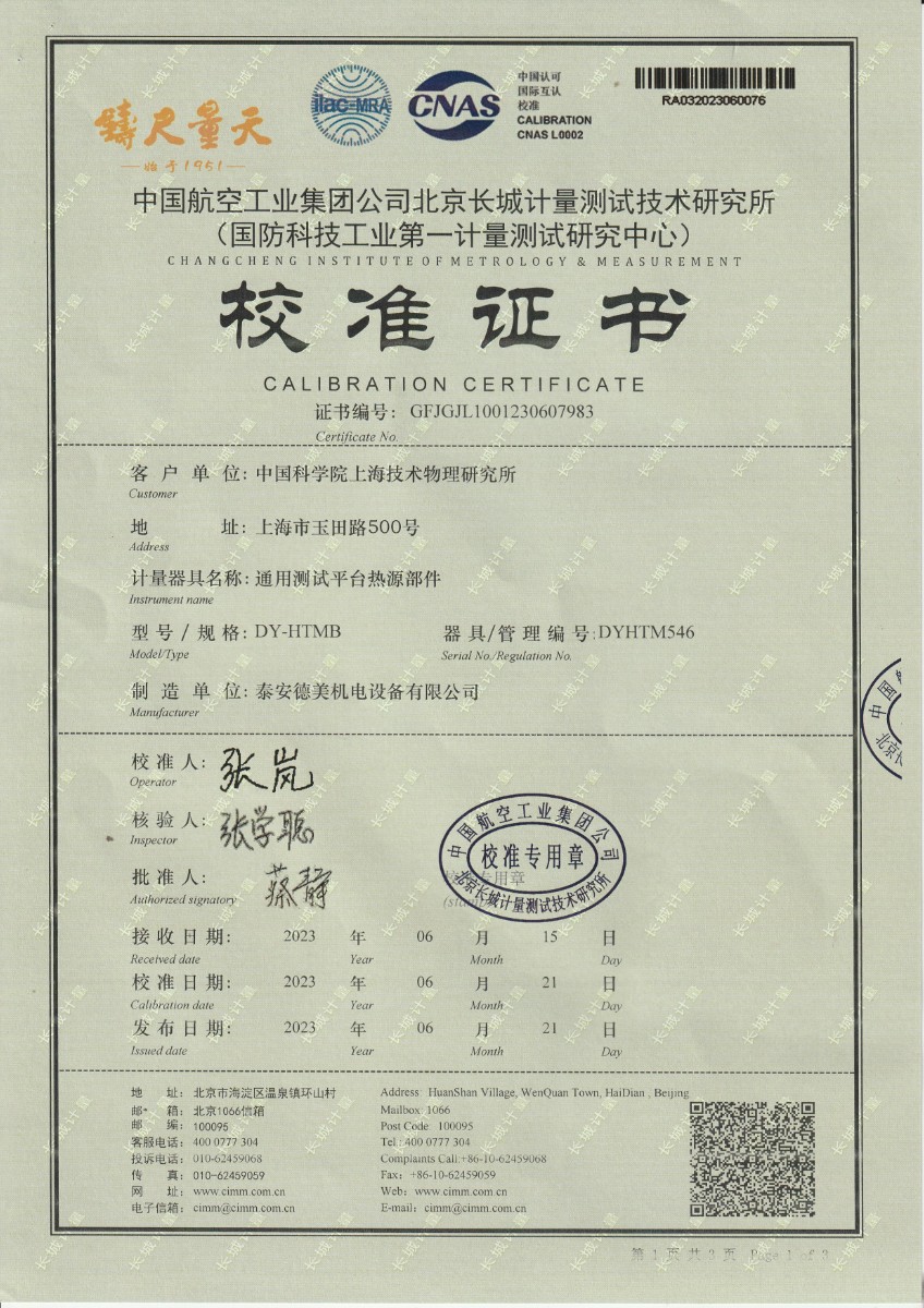 | 上一條:中國科學(xué)院上海技術(shù)物理研究所-通用測試平臺熱源部件(DYHTM545) | 下一條:智能干體儀(六位半精度)校準(zhǔn)證書 |