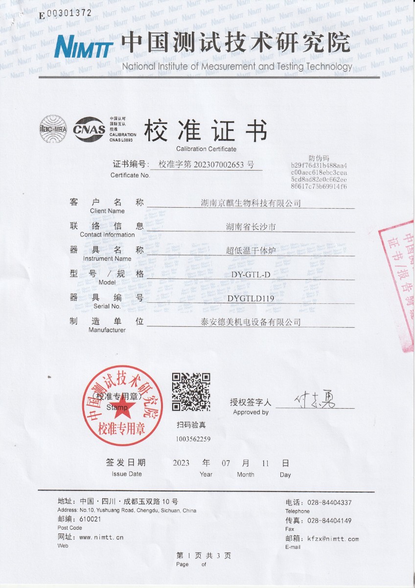 湖南京麒生物科技有限公司超-低溫干體爐 2023-7-17 本文被閱讀 11846 次