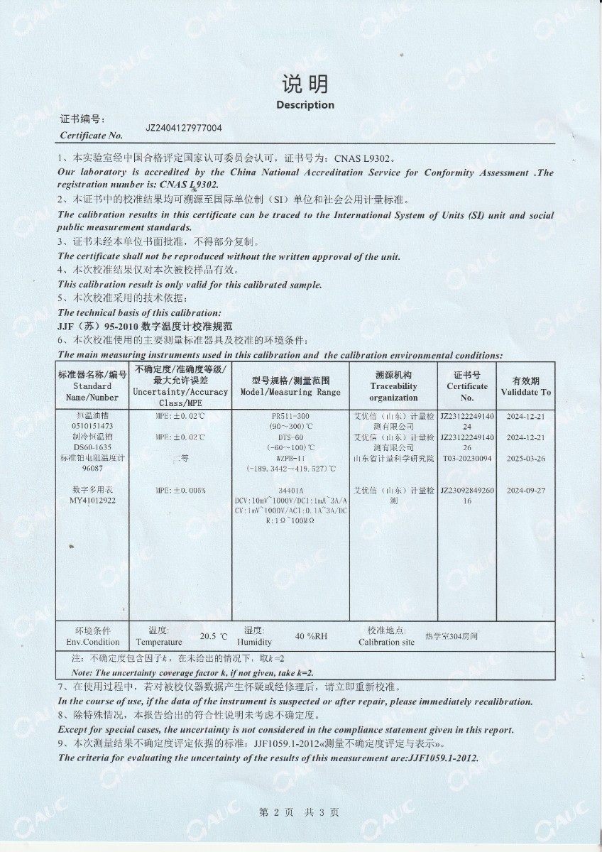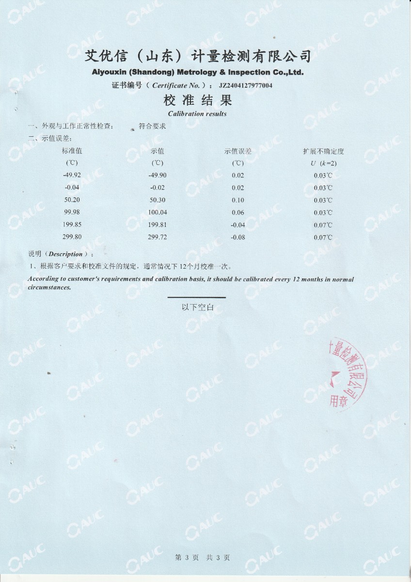 | 上一條:便攜式恒溫油槽校準(zhǔn)證書(shū) | 下一條:智能干體儀(六位半精度)校準(zhǔn)證書(shū) |