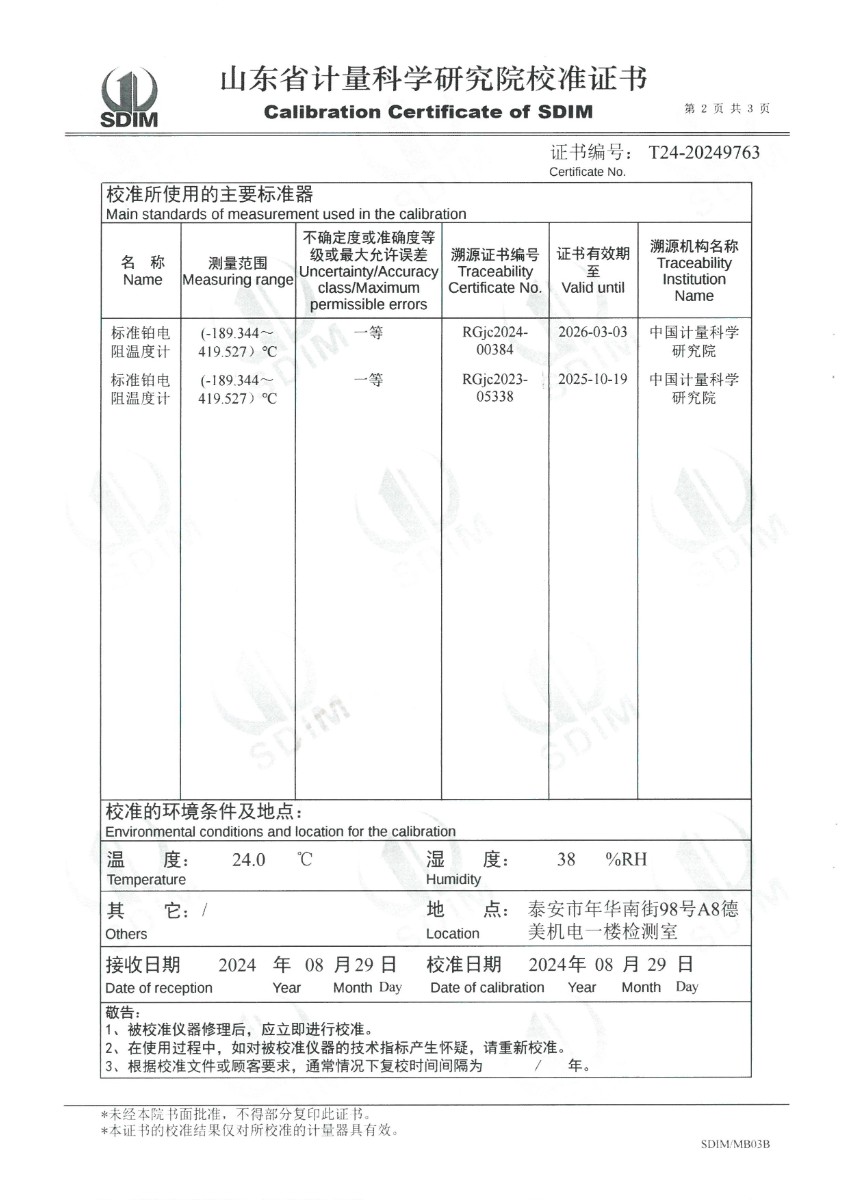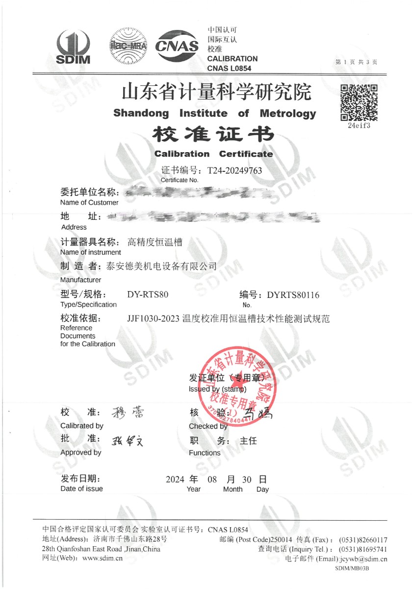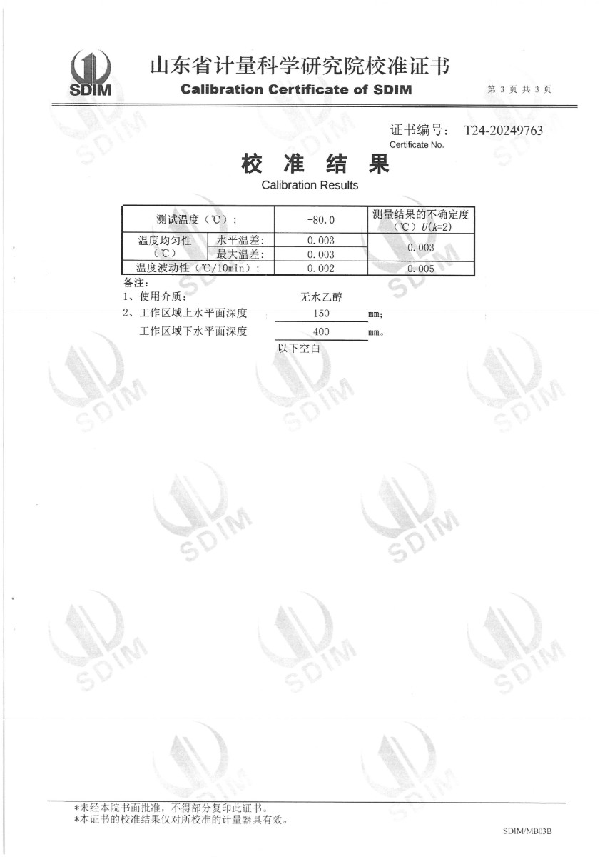高精度恒溫槽(-80~100℃)校準證書 2024-9-3 本文被閱讀 6101 次