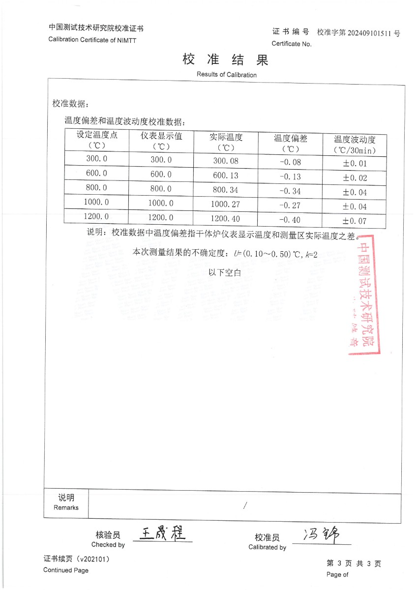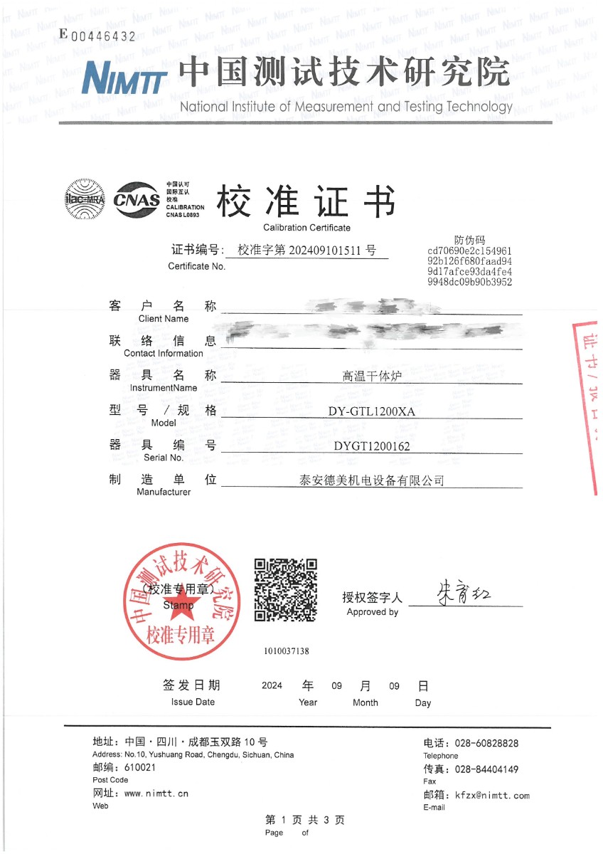 | 上一條:泰安德美-輻射溫度計(jì)(-30~900℃)校準(zhǔn)證書 | 下一條:智能干體儀(六位半精度)校準(zhǔn)證書 |