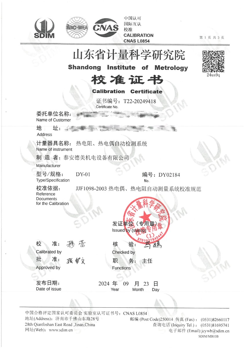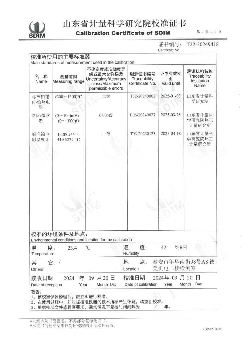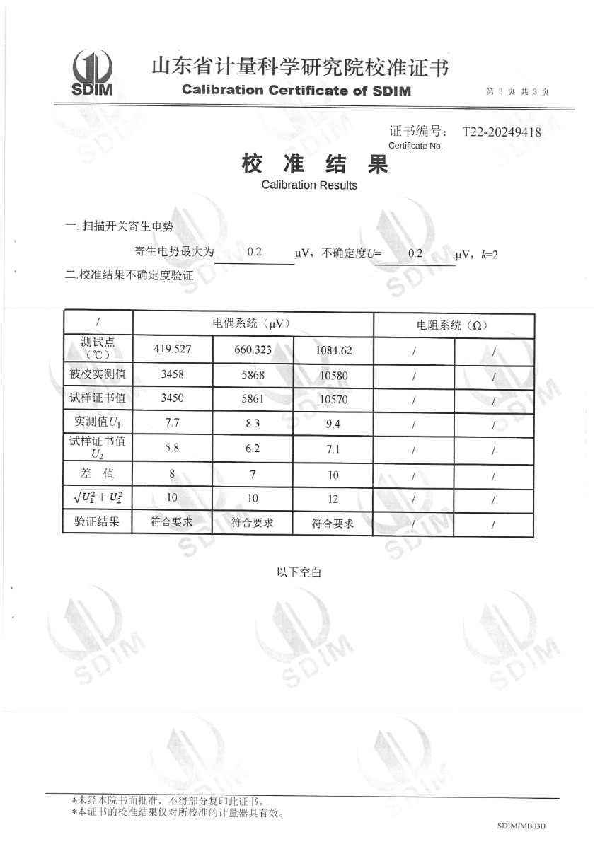 | 上一條:貴金屬熱電偶檢定爐(800~1600℃)校準(zhǔn)證書 | 下一條:智能干體儀(六位半精度)校準(zhǔn)證書 |
