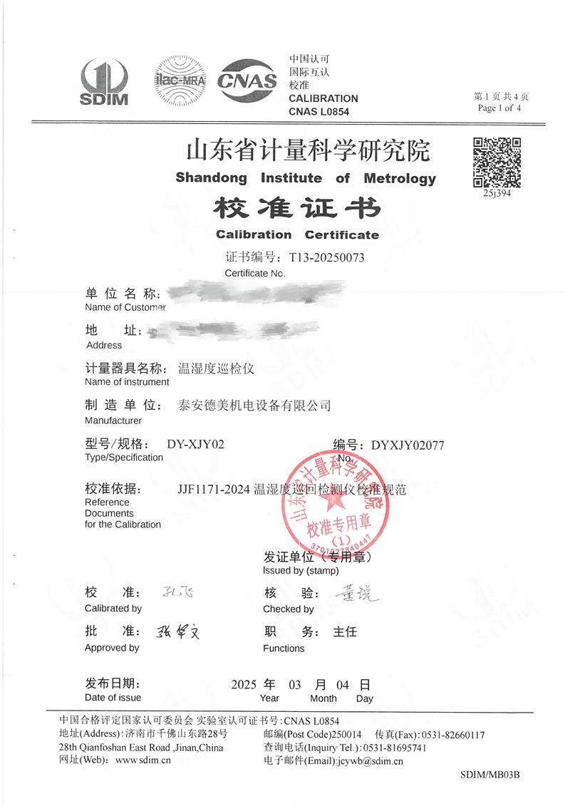 溫濕度巡檢儀校準(zhǔn)證書 2025-3-8 本文被閱讀 3417 次