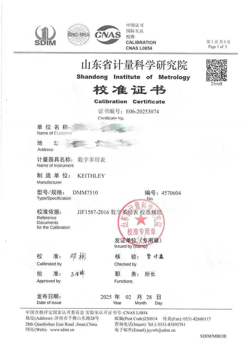 數(shù)字多用表校準(zhǔn)證書 2025-3-8 本文被閱讀 3732 次