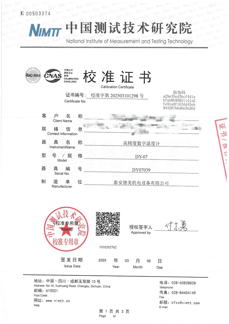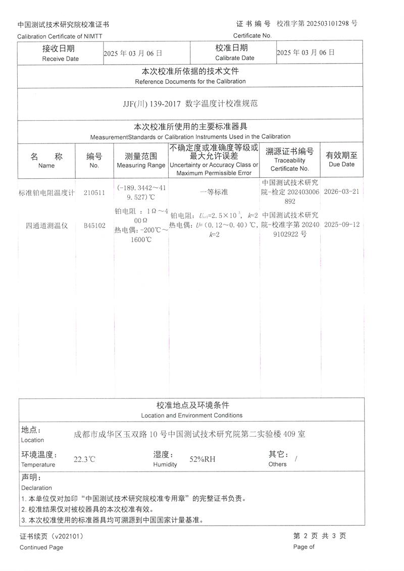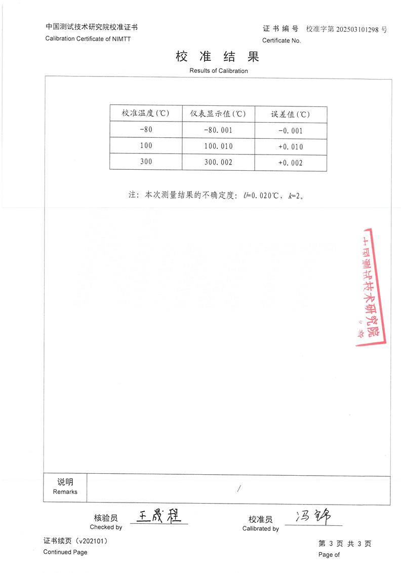 高精度數(shù)字溫度計(jì)(-80~300℃)校準(zhǔn)證書(shū) 2025-3-10 本文被閱讀 4005 次