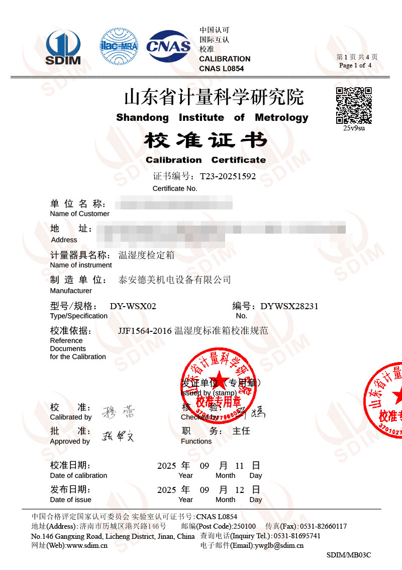 | 上一條:輻射源黑體爐(室溫+5-300℃)校準(zhǔn)證書 | 下一條:智能干體儀(六位半精度)校準(zhǔn)證書 |