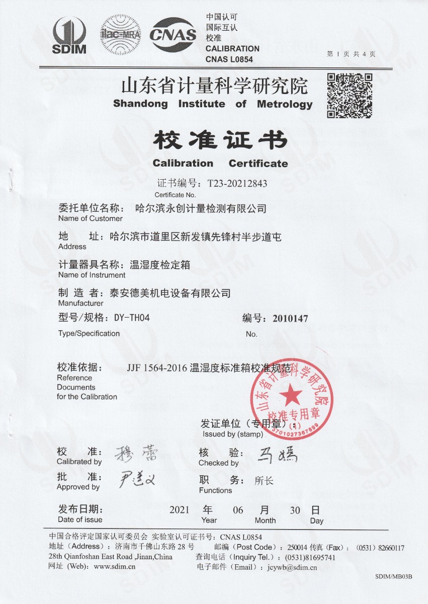 | 上一條:廣東省連平縣質(zhì)量技術(shù)監(jiān)督檢測所-溫濕度檢定箱 | 下一條:溫濕度檢定箱校準(zhǔn)證書 |