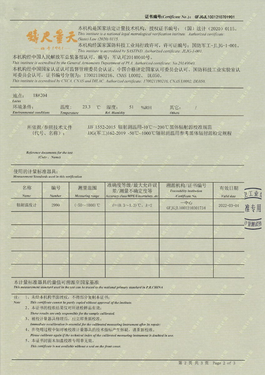 上一條:山東博測計量檢測技術(shù)有限公司-黑體輻射源下一條:溫濕度檢定箱校準(zhǔn)證書