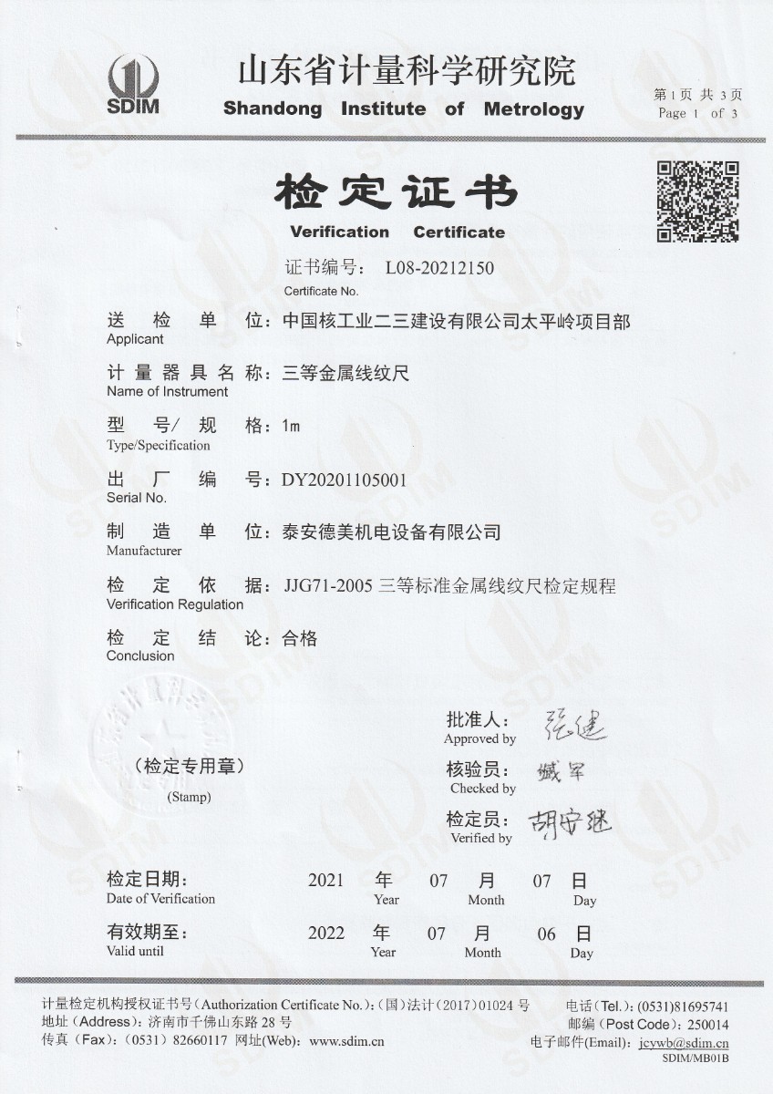 | 上一條:中國核工業(yè)二三建設(shè)有限公司太平嶺項目部-零點恒溫器 | 下一條:智能干體儀(六位半精度)校準(zhǔn)證書 |