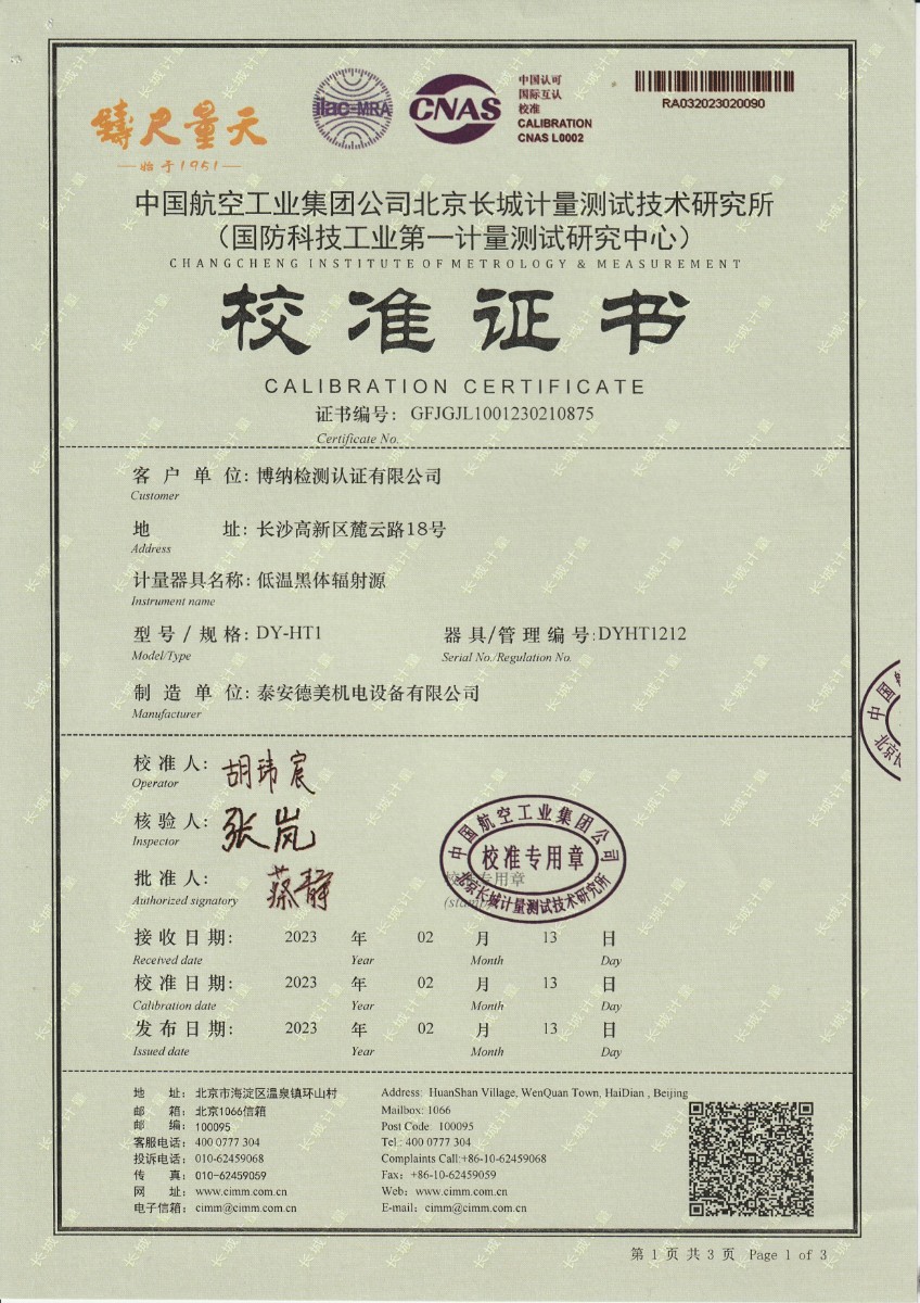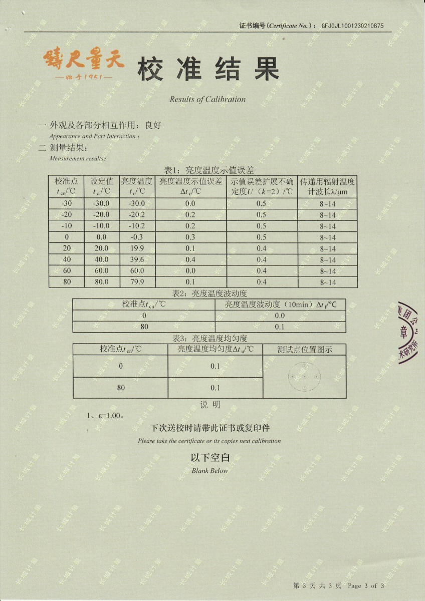 | 上一條:晶科能源(海寧)有限公司 冷鏡式露點(diǎn)儀(溫度) 校準(zhǔn)證書 | 下一條:智能干體儀(六位半精度)校準(zhǔn)證書 |