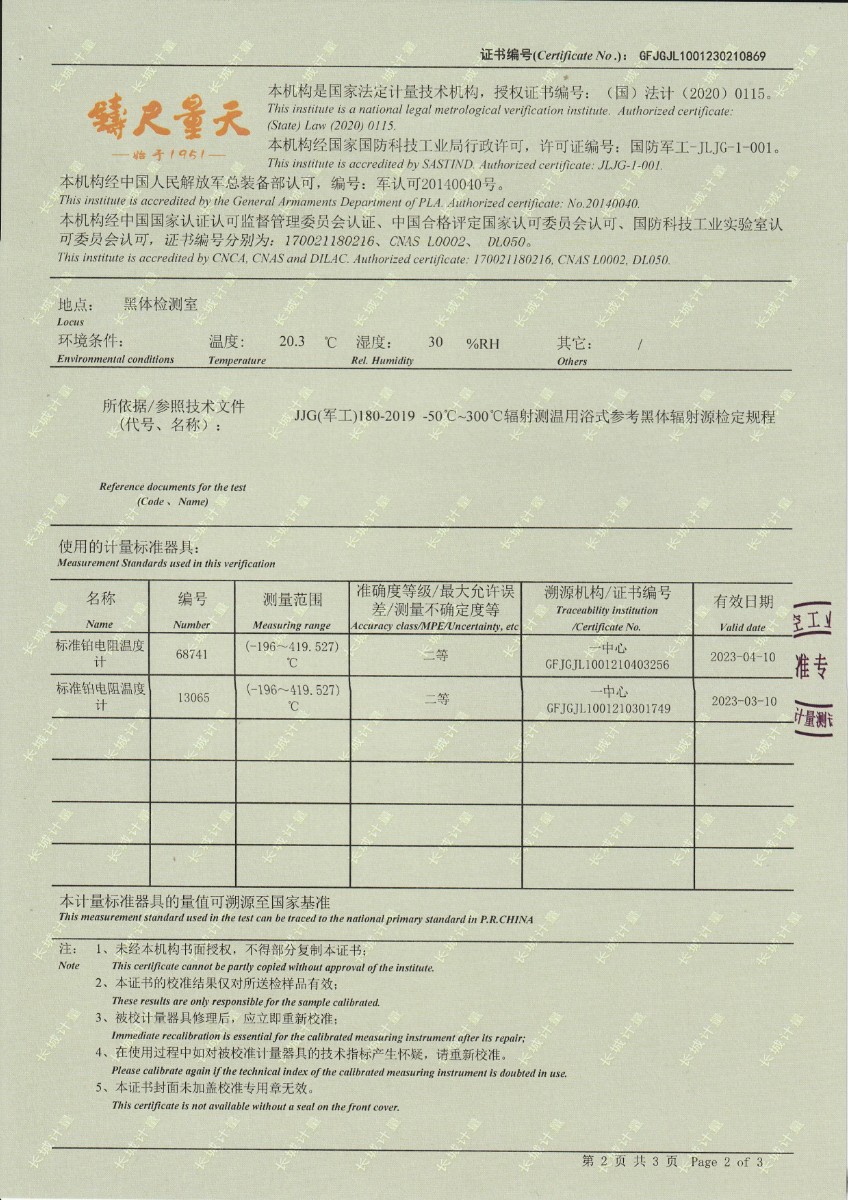 西安和其光電科技股份有限公司 低溫浴式黑體輻射源 校準證書 2023-2-25 本文被閱讀 11375 次
