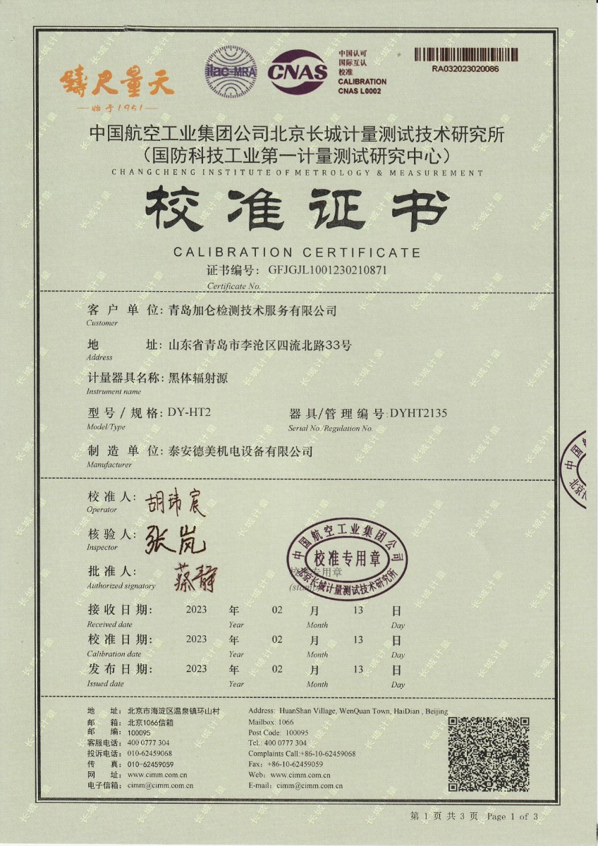 | 上一條:中國民航大學(xué) 黑體爐 校準(zhǔn)證書 | 下一條:智能干體儀(六位半精度)校準(zhǔn)證書 |