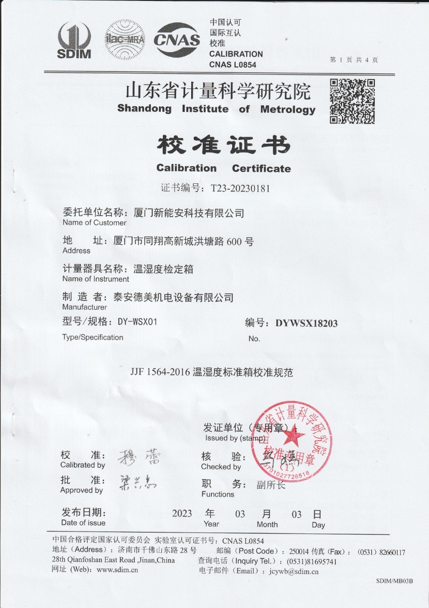 | 上一條:西安楊森制藥有限公司 溫濕度檢定箱 校準(zhǔn)證書 | 下一條:智能干體儀(六位半精度)校準(zhǔn)證書 |