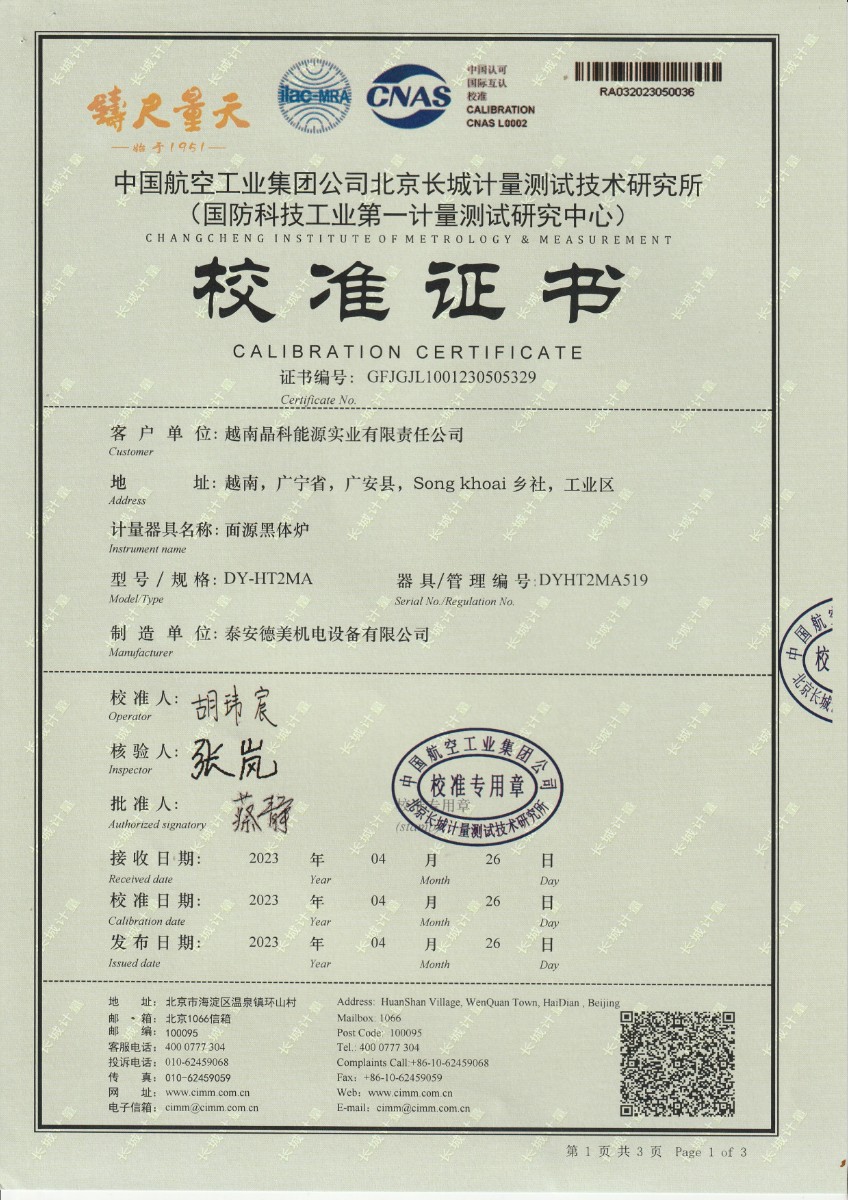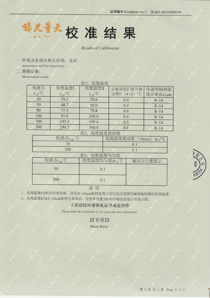 | 上一條:淮安捷泰新能源科技有限公司 黑體輻射源 校準(zhǔn)證書(shū) | 下一條:智能干體儀(六位半精度)校準(zhǔn)證書(shū) |