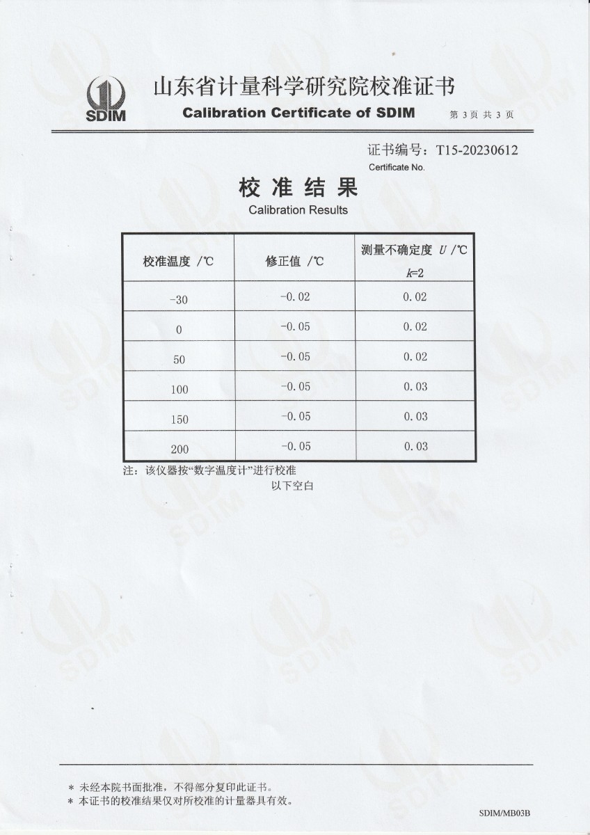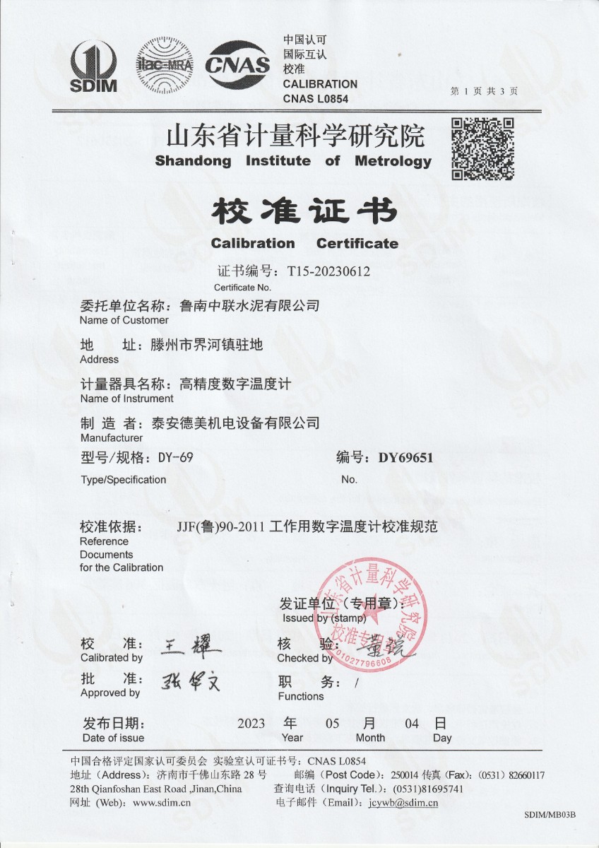 魯南中聯水泥有限公司 高精度數字溫度計 校準證書 2023-5-18 本文被閱讀 11391 次