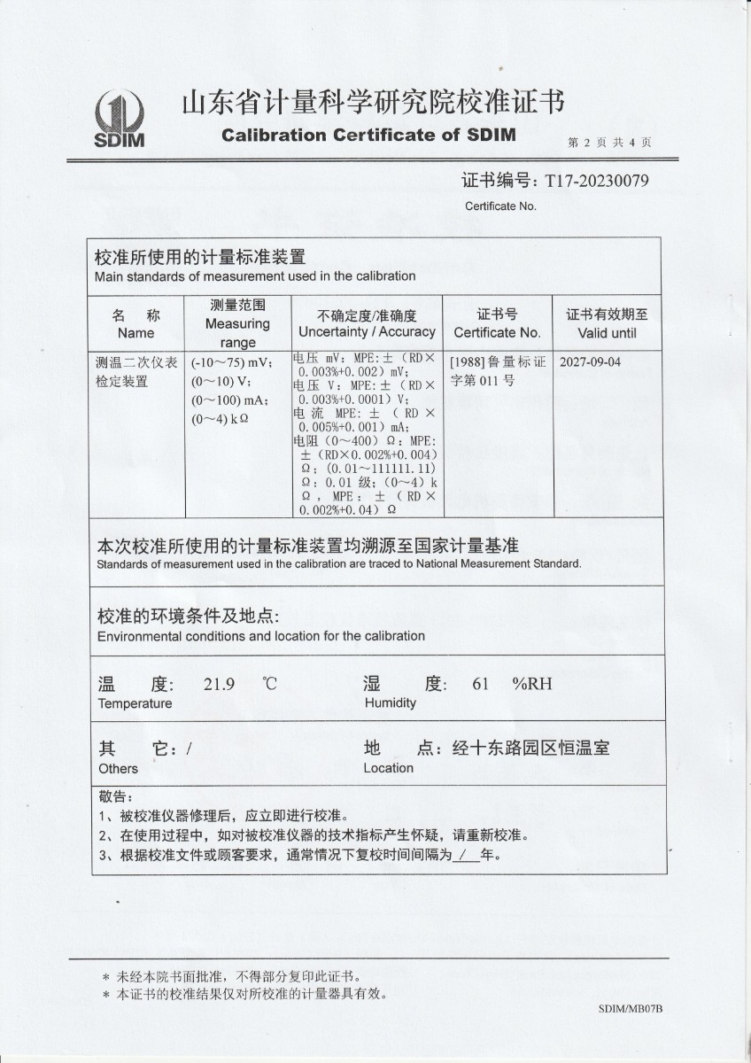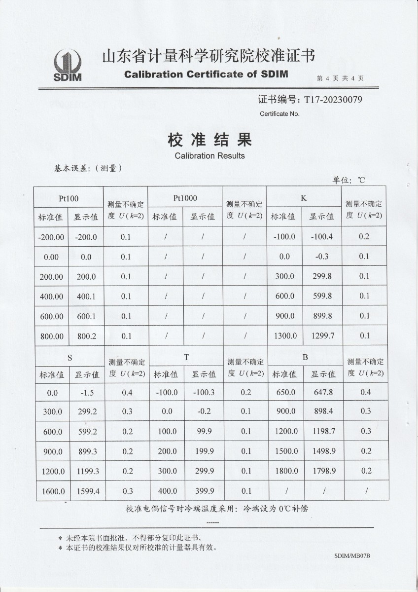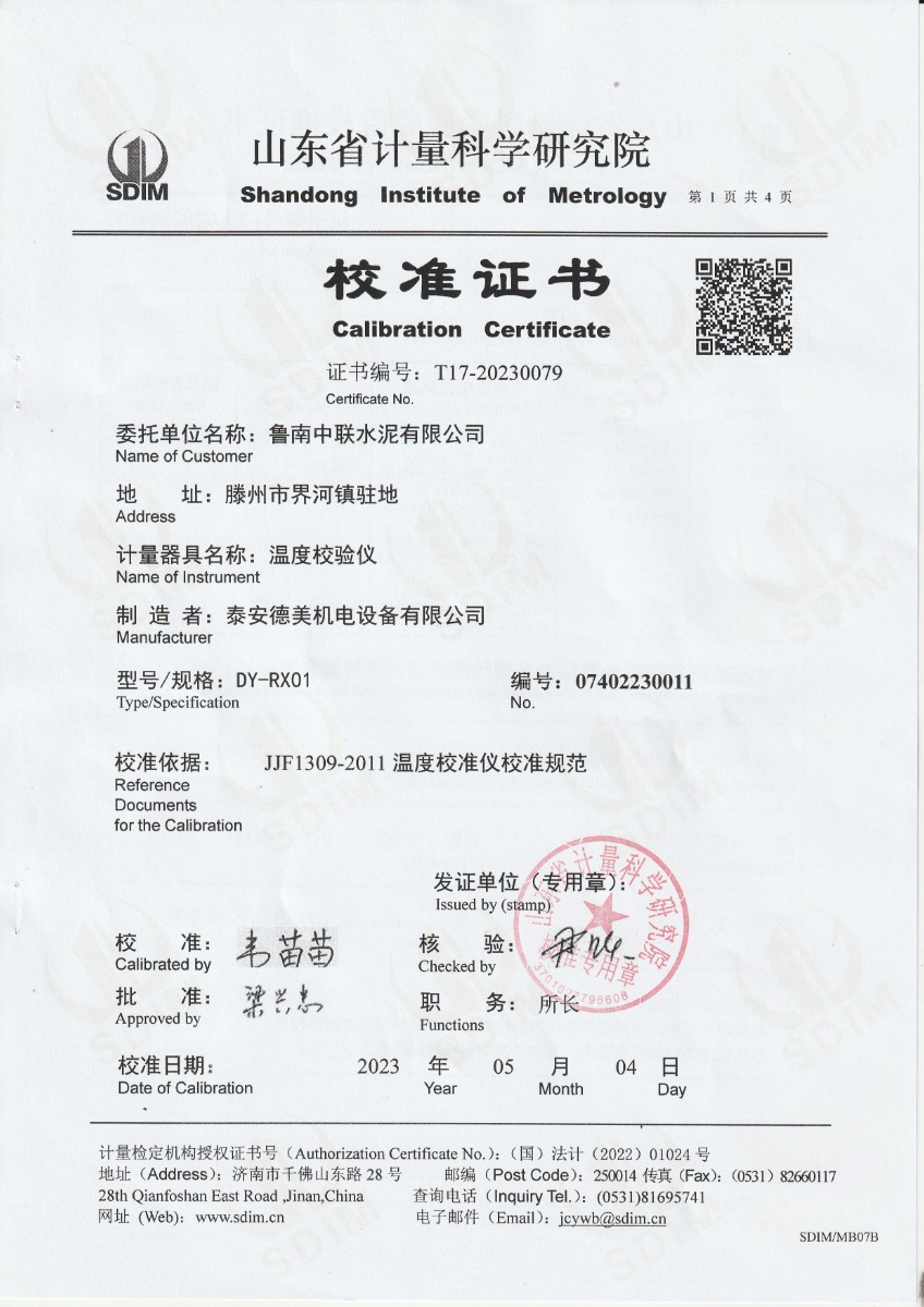 | 上一條:魯南中聯(lián)水泥有限公司 高精度數(shù)字溫度計(jì) 校準(zhǔn)證書(shū) | 下一條:智能干體儀(六位半精度)校準(zhǔn)證書(shū) |