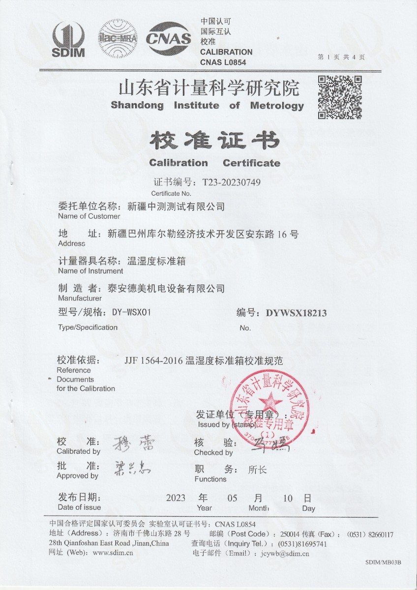 | 上一條:越南晶科能源實(shí)業(yè)有限責(zé)任公司 溫濕度標(biāo)準(zhǔn)箱 校準(zhǔn)證書 | 下一條:智能干體儀(六位半精度)校準(zhǔn)證書 |