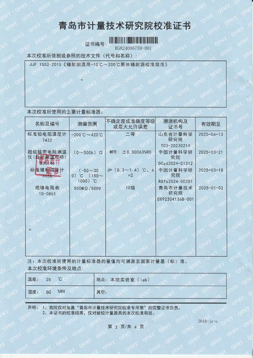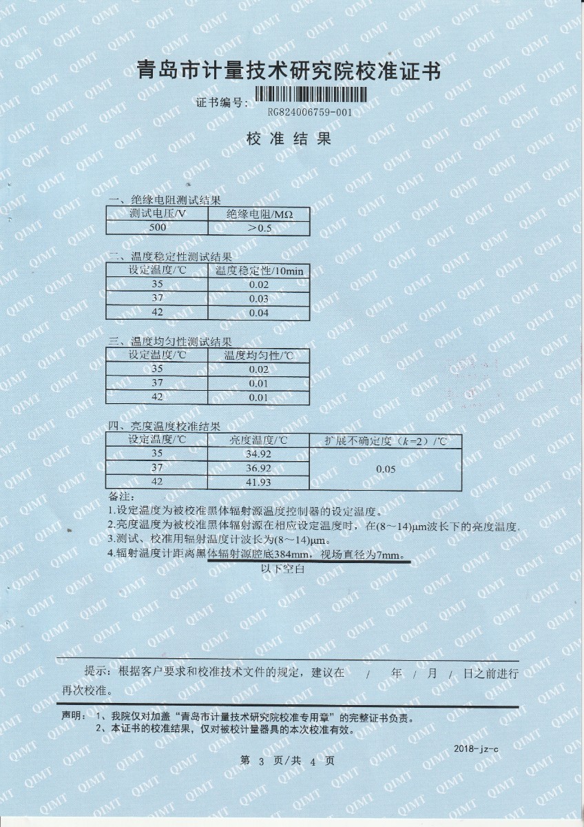 額溫計黑體空腔校準(zhǔn)證書 2024-4-16 本文被閱讀 7040 次