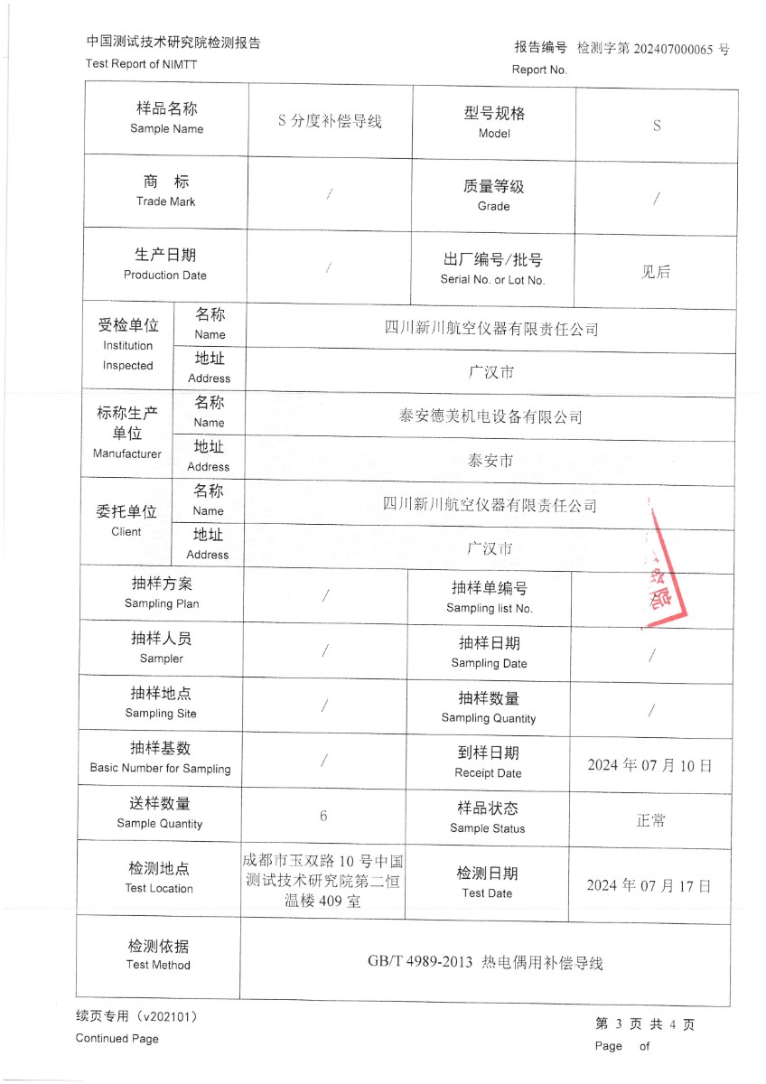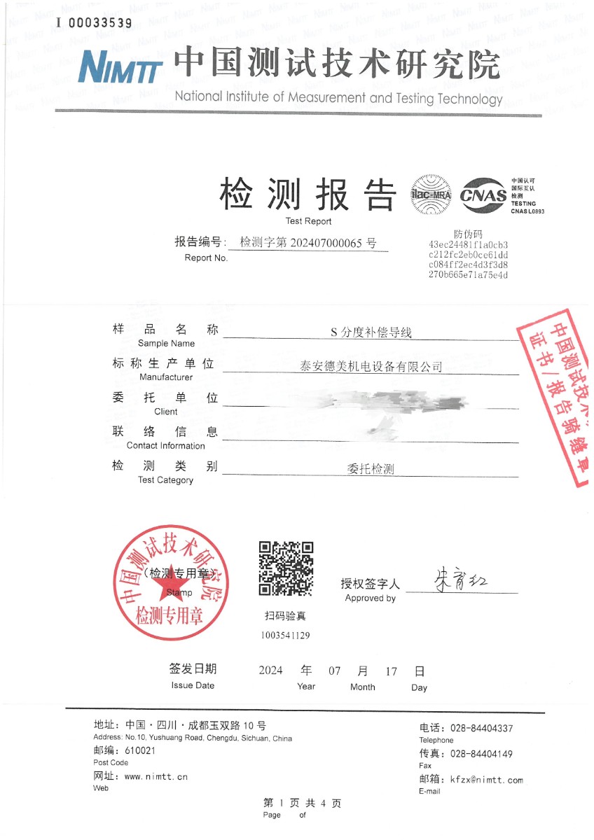 | 上一條:熱電偶用補(bǔ)償導(dǎo)線K分度校準(zhǔn)證書 | 下一條:智能干體儀(六位半精度)校準(zhǔn)證書 |