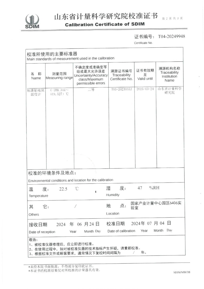 | 上一條:溫濕度檢定箱(-20~70℃)校準(zhǔn)證書 | 下一條:智能干體儀(六位半精度)校準(zhǔn)證書 |